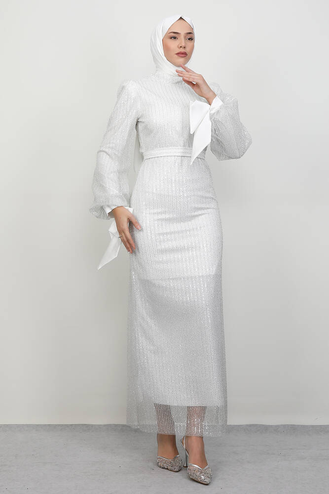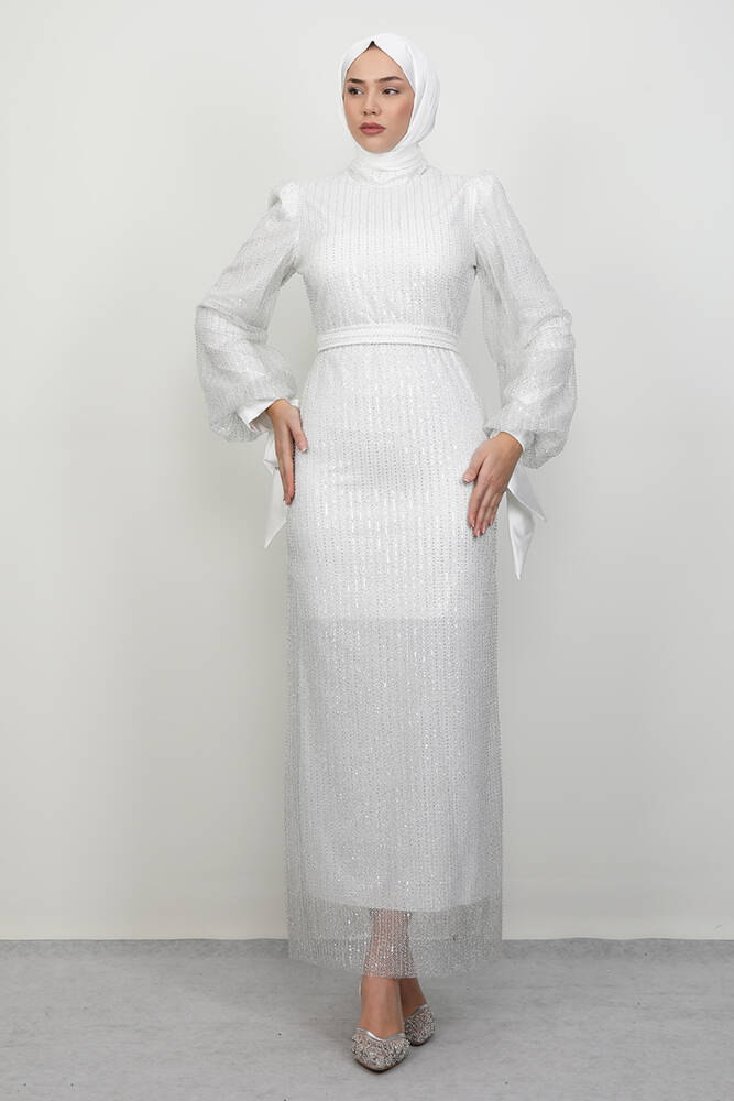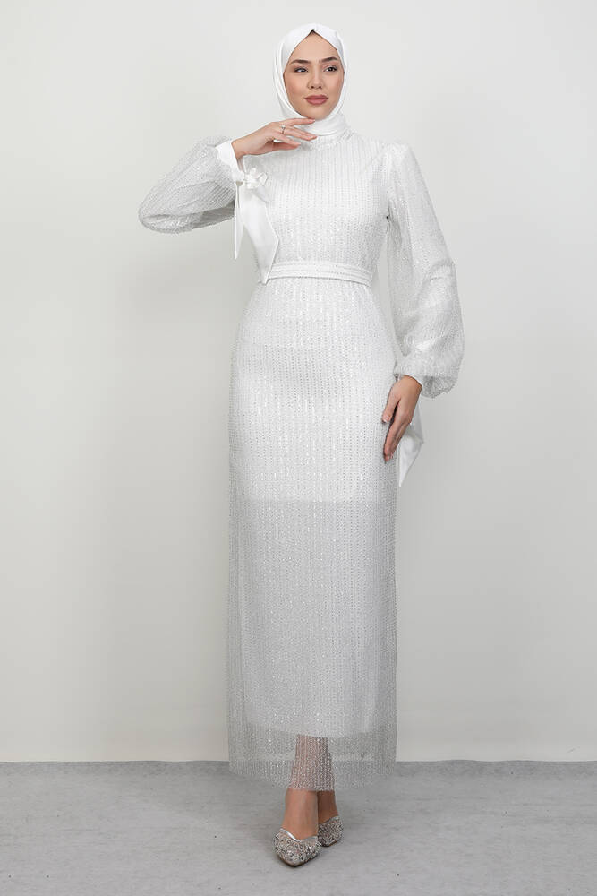 -AKSESUAR : Seyyar kuşaklıdır. Sırttan kullanılabilir fermuar mevcuttur.Kollar saten bağlama boncuklar dikilidir.Glopludur.