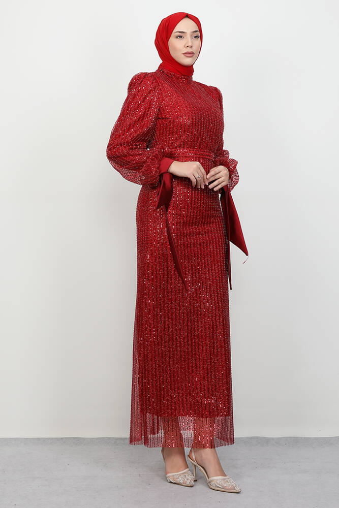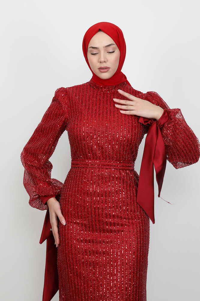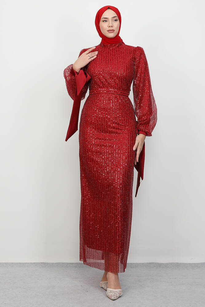 -AKSESUAR : Seyyar kuşaklıdır. Sırttan kullanılabilir fermuar mevcuttur.Kollar saten bağlama boncuklar dikilidir.Glopludur.