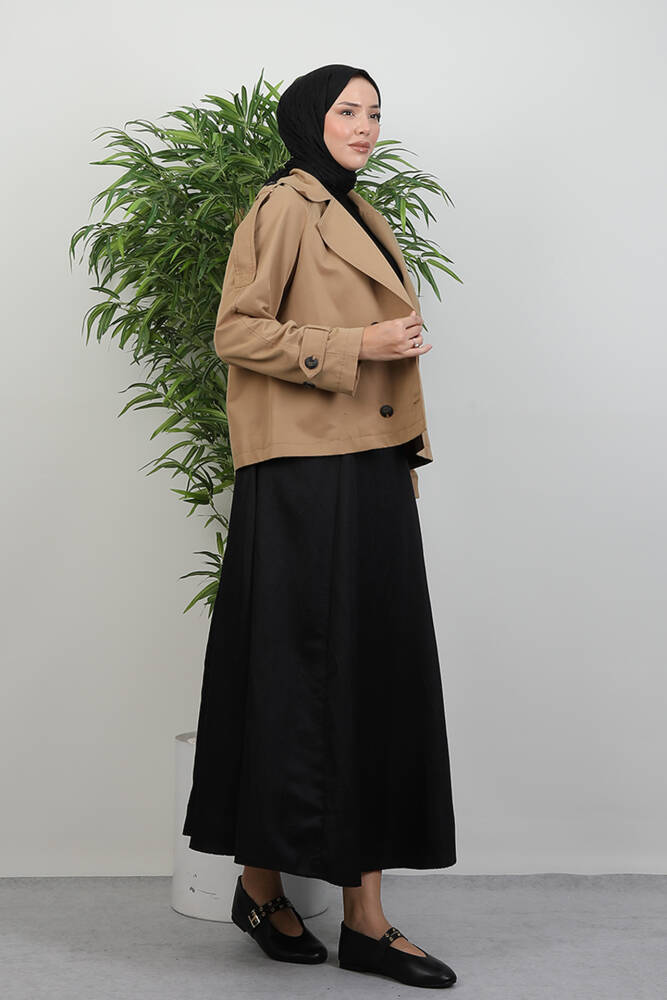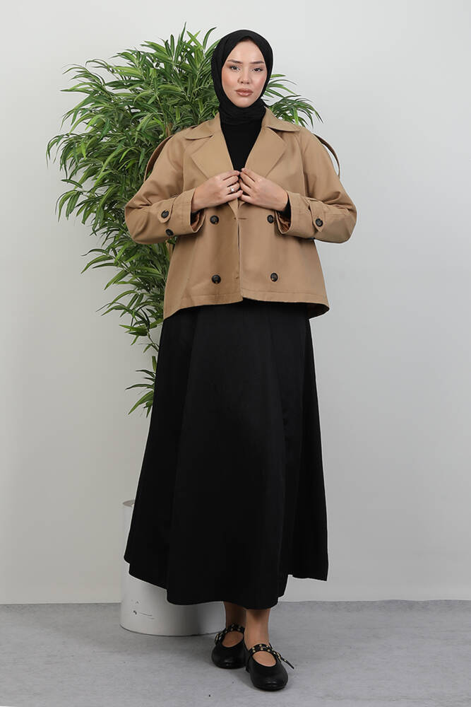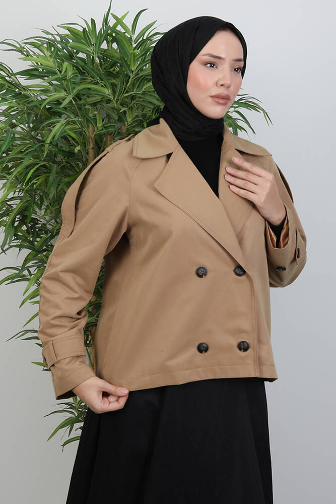 Apoletli Kısa Trenç Sütlükahve