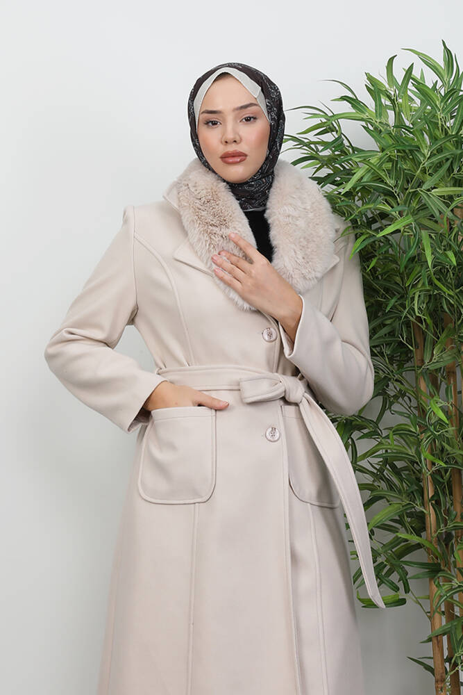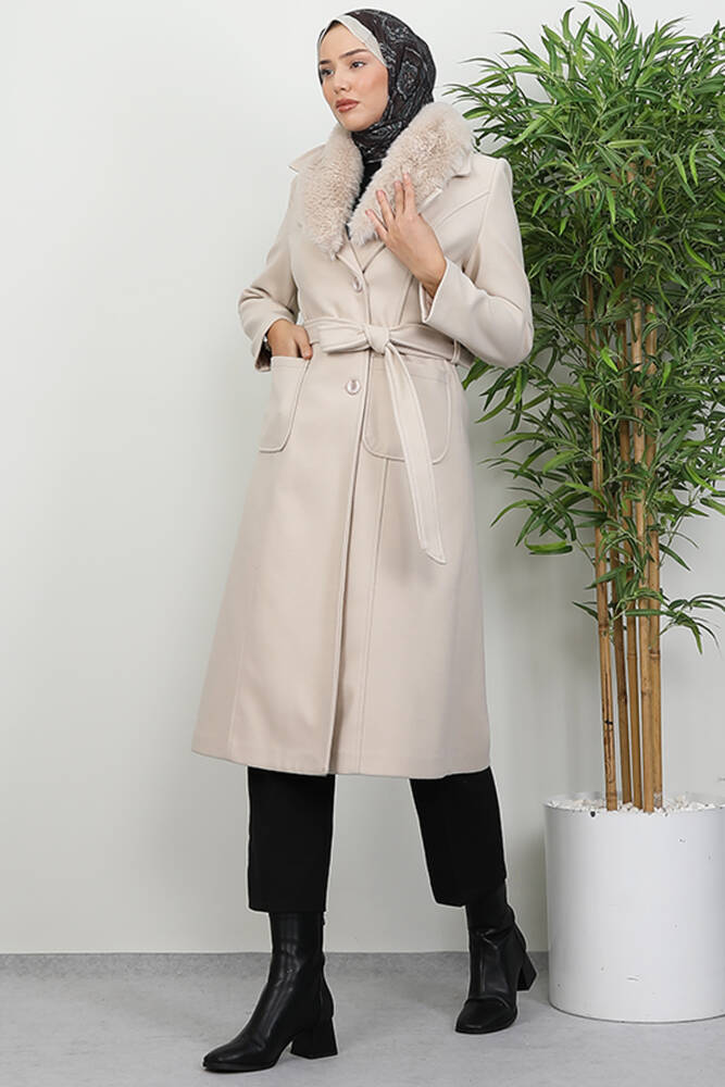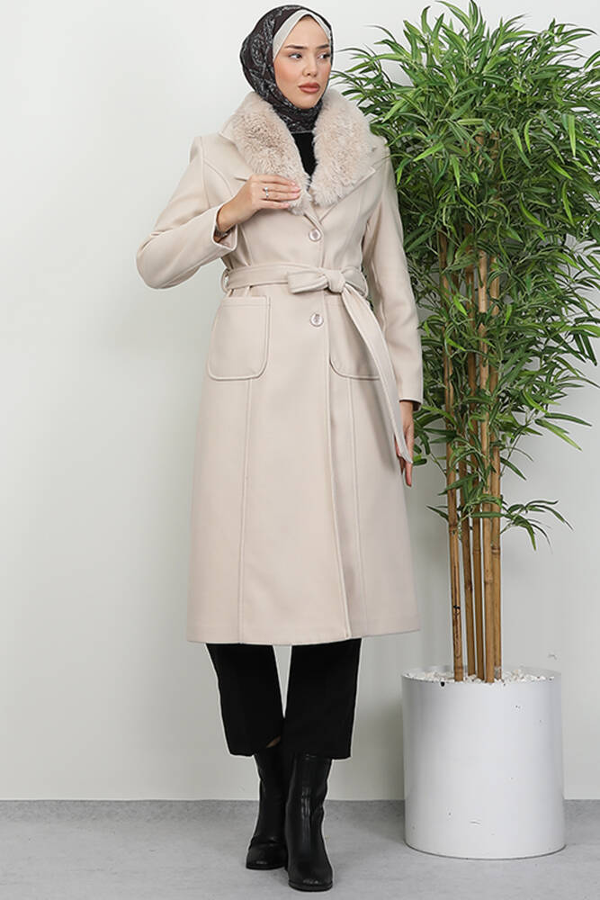 Arven Kürklü Kaban Krem