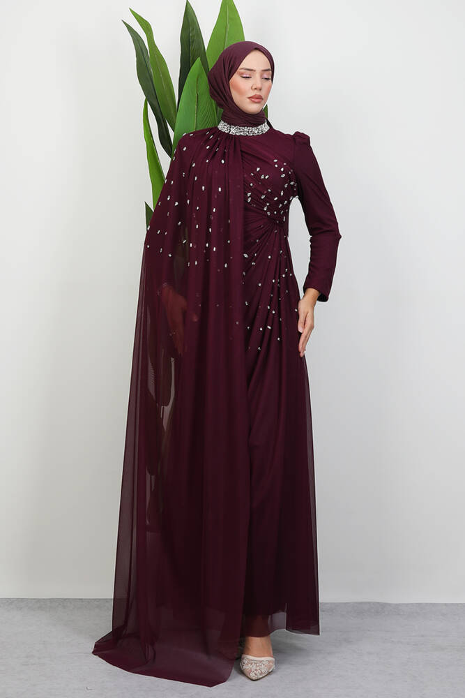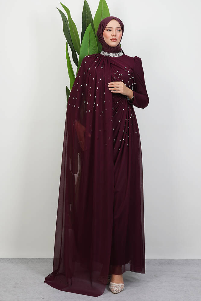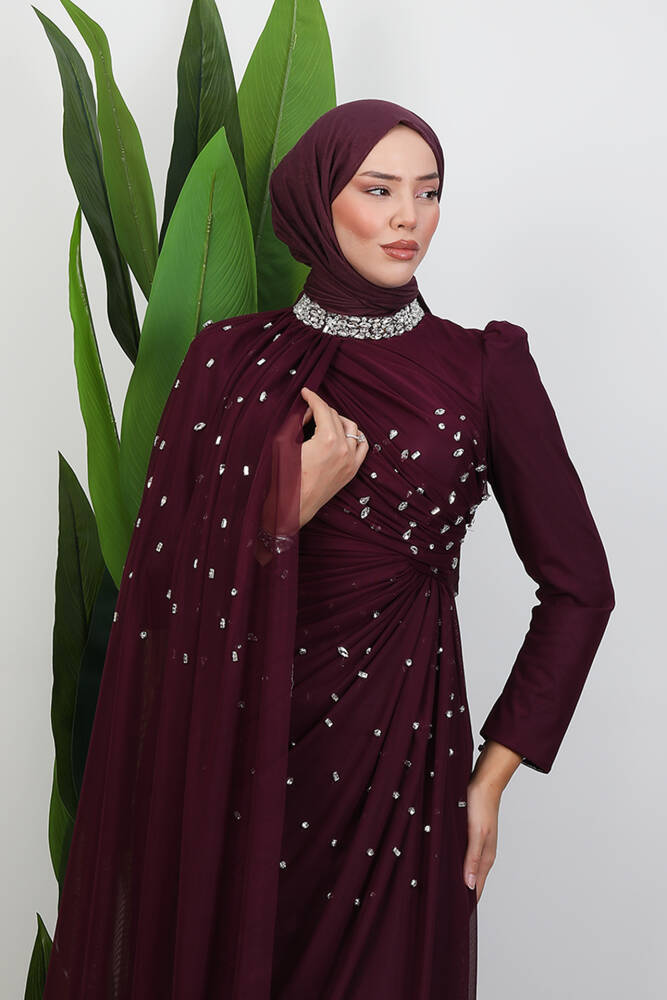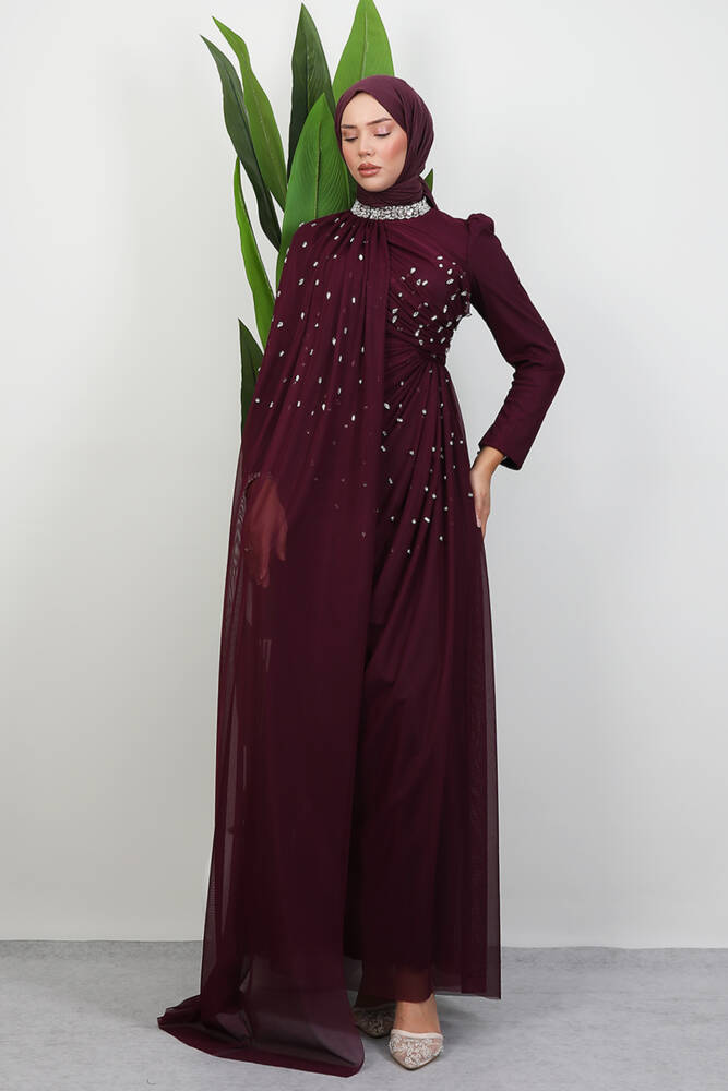 Asrın Boncuk Abiye Bordo