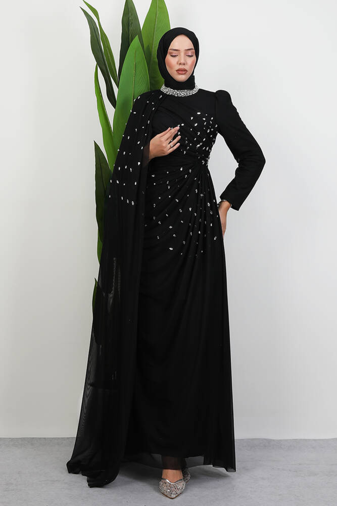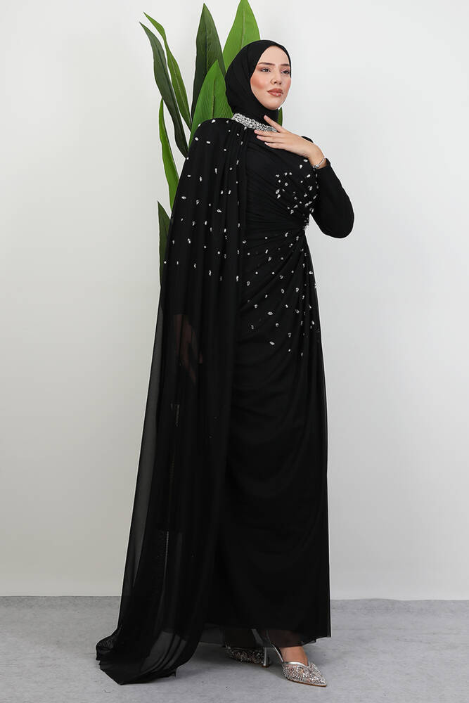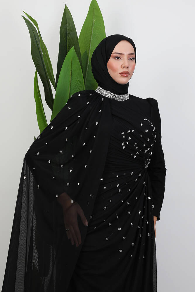 -AKSESUAR : Sırttan kullanılabilir fermuar mevcuttur. Glopludur. Boyun kısmındaki taşlar yapıştırmadır. Üzerindeki taşlar ürüne dikilidir.