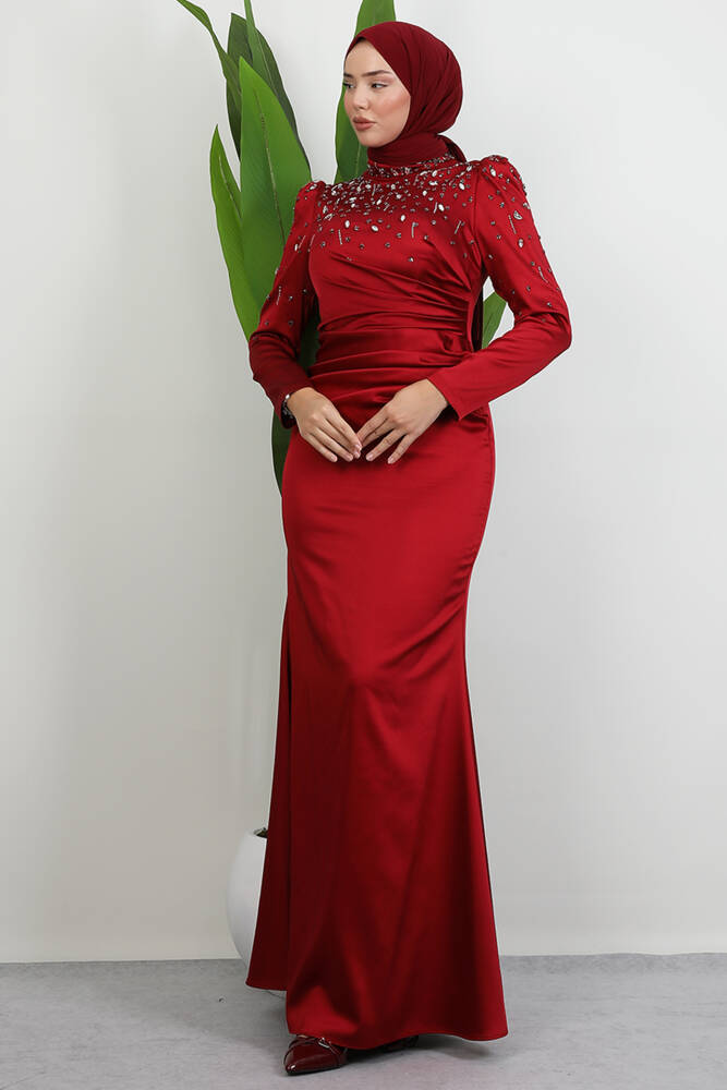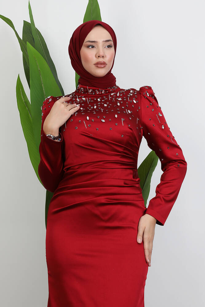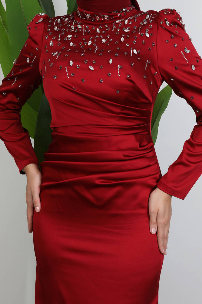 Duru Taşlı Abiye Bordo