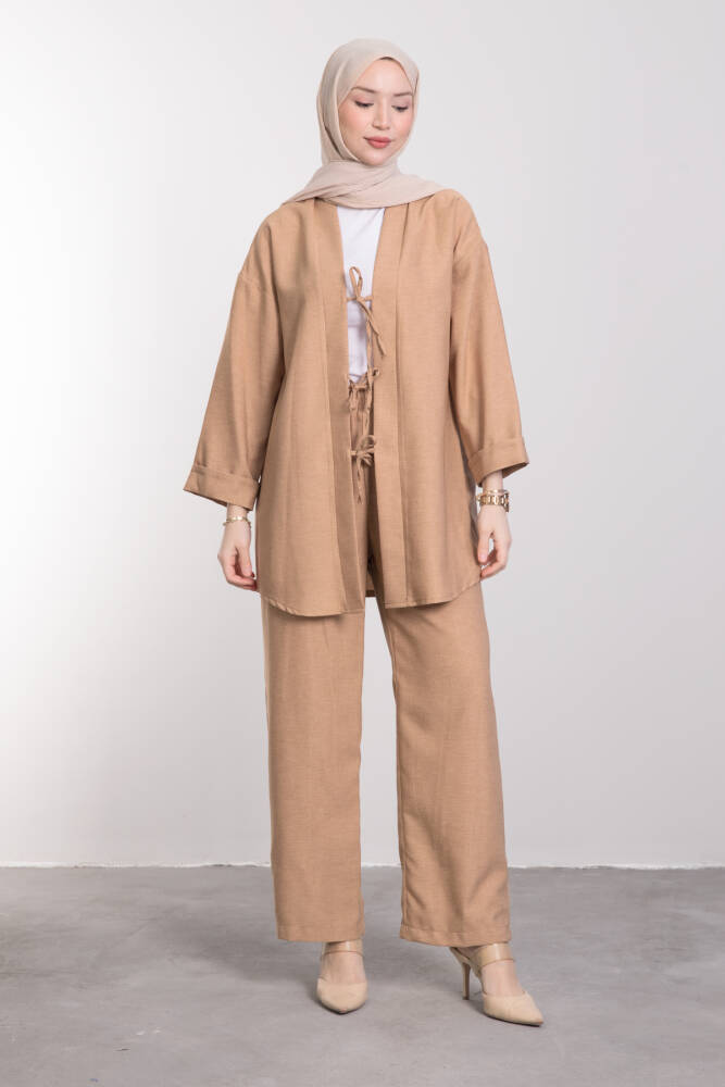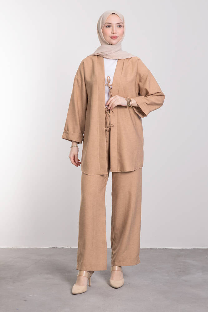 Bağcıklı Rahat Kesim Tesettür Takım Karamel