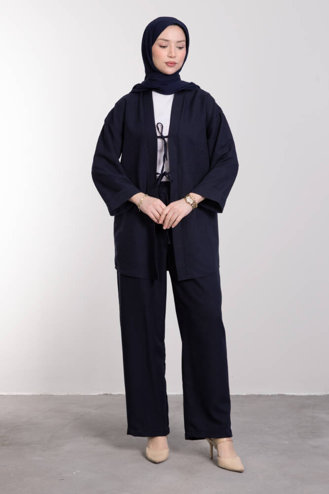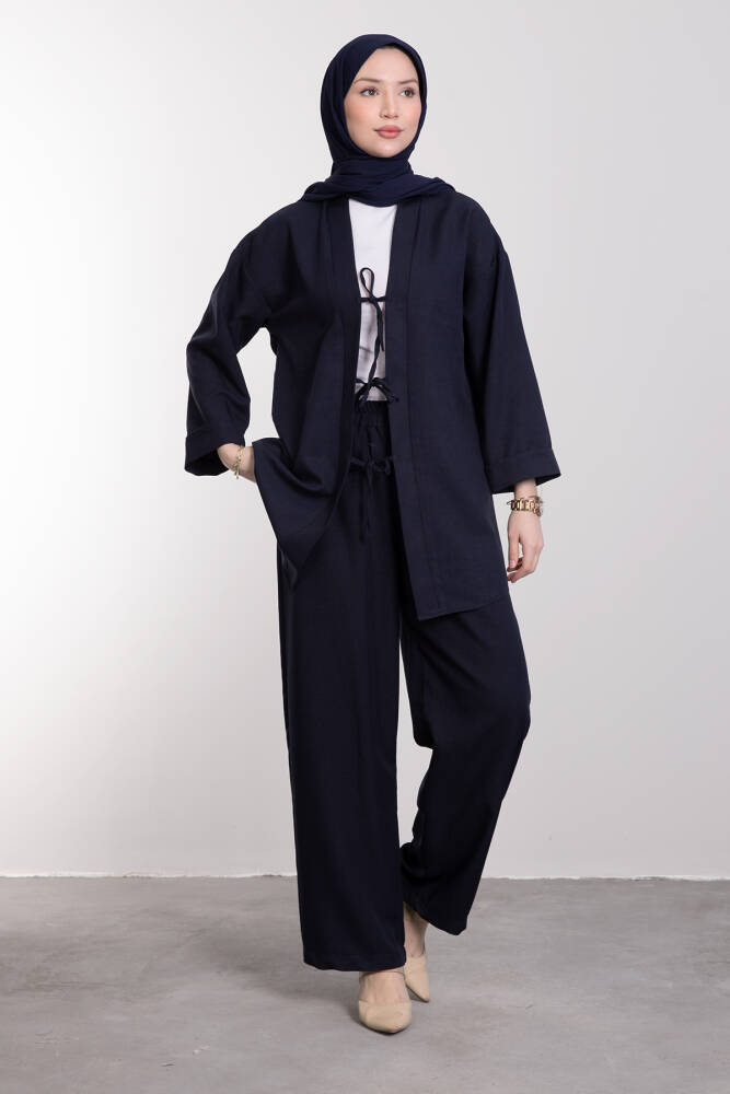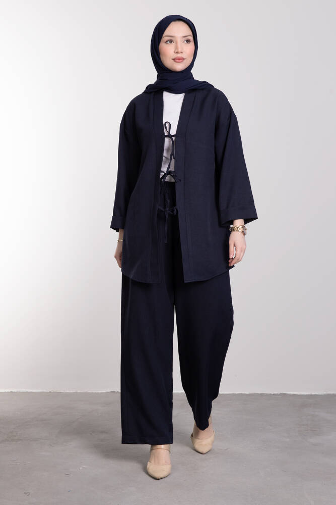Bağcıklı Rahat Kesim Tesettür Takım Siyah