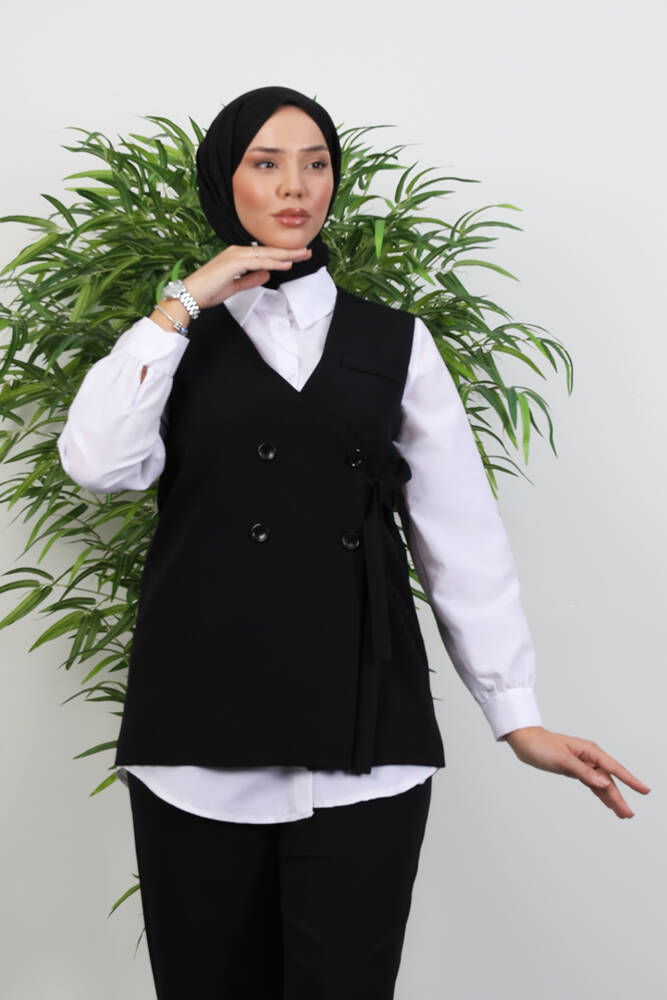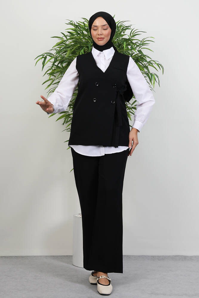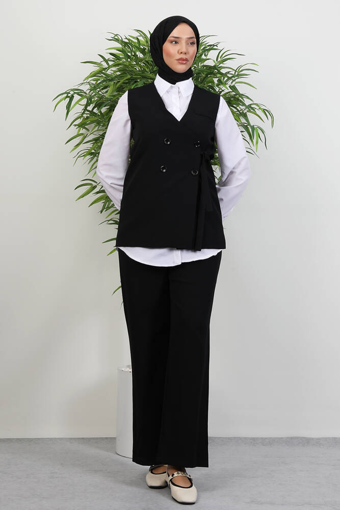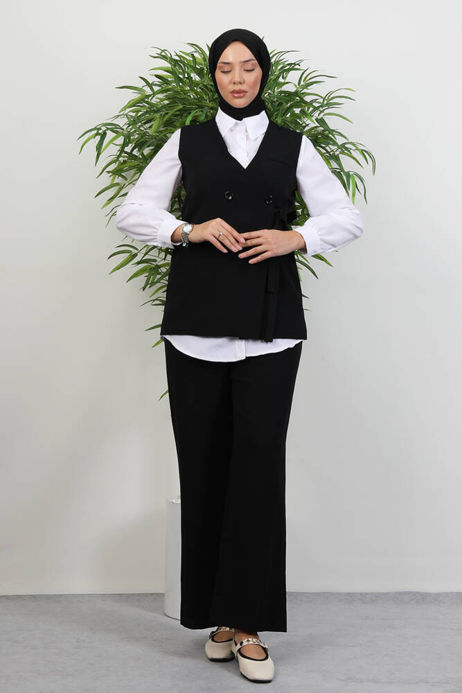 Bağlamalı Yelek Takım Siyah