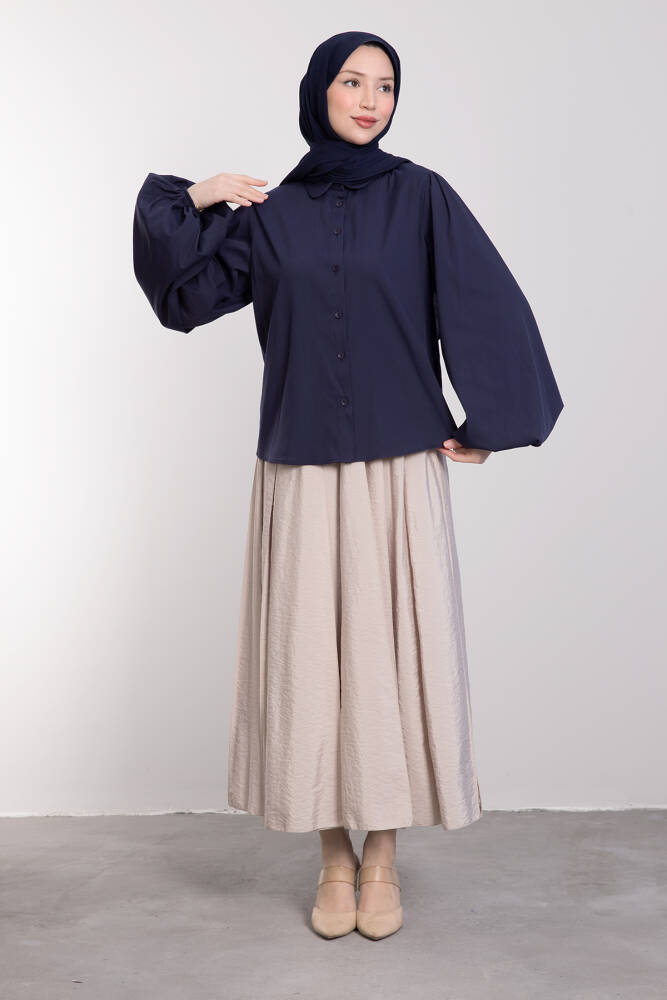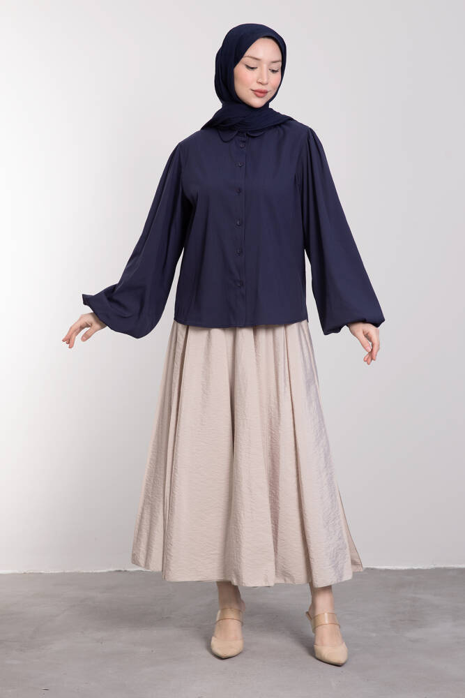 Gizli Düğmeli Saten Gömlek Bisküvi