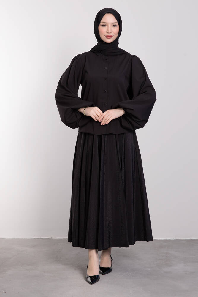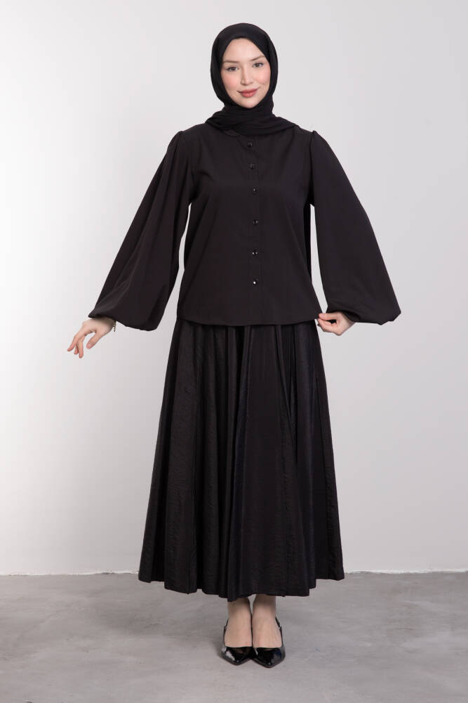 Balon Kol Düğmeli Gömlek Bebe Mavi