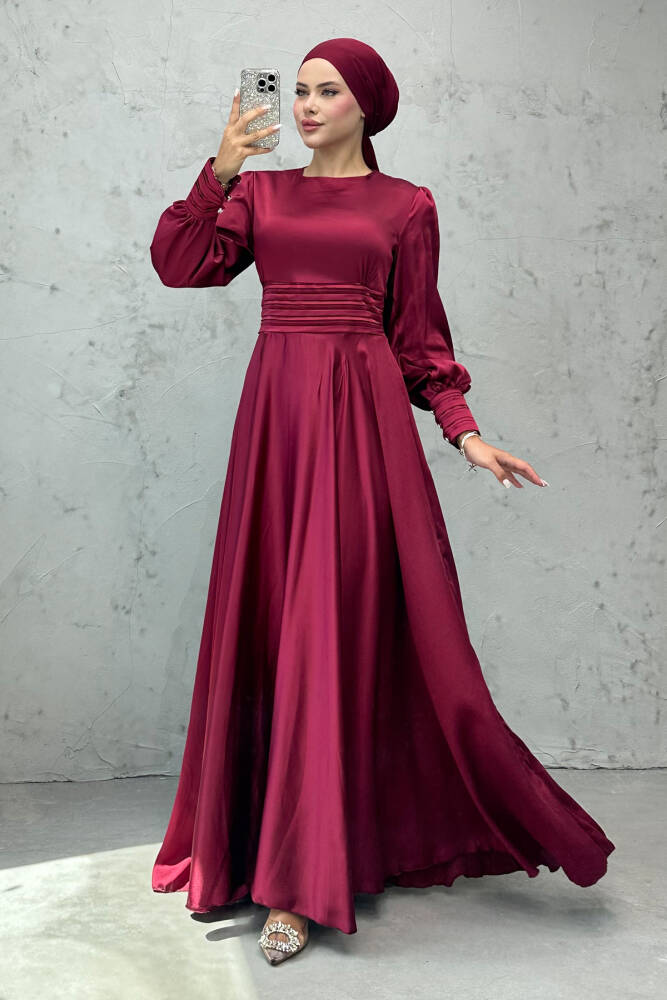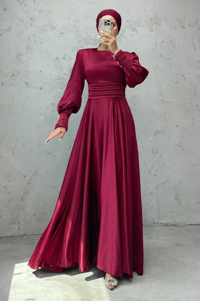 Beli Pileli Saten Abiye Bordo