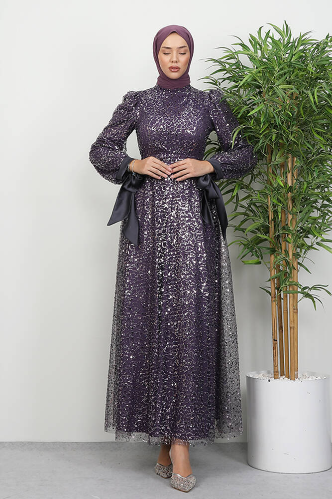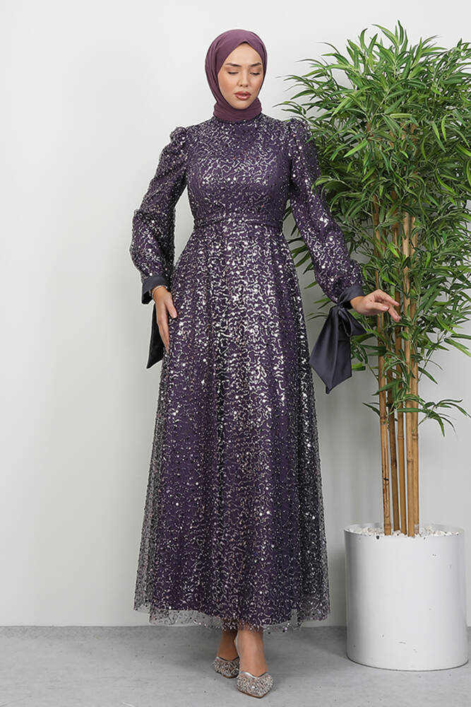 Betül Tesettür Abiye Koyu Lila
