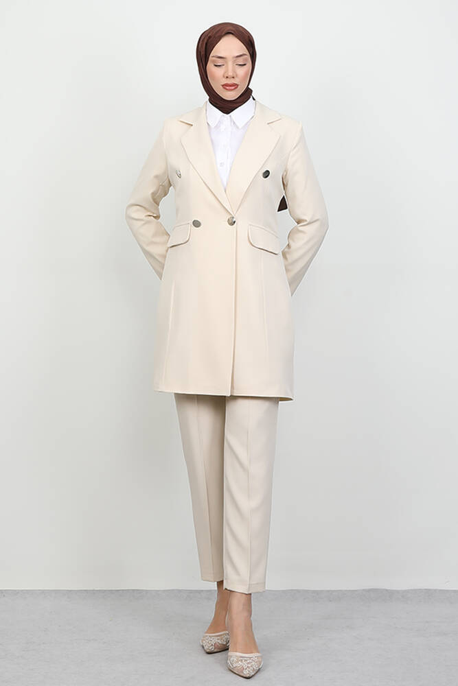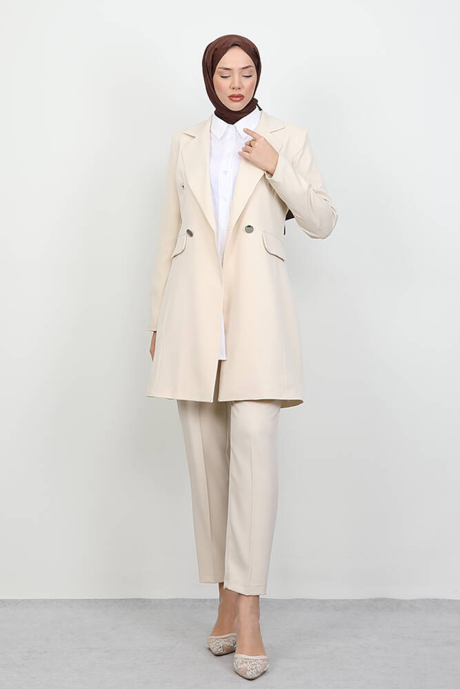 Kumaş Özelliği : Krep Kumaş Ürün Bilgisi : İpek, yün ve viscose kumaşların karışından elde edilen karma yapıya sahip olup 4 mevsim kullanımına uygundur. Ürün boyu: 86 cm  Pantolon boyu: 97 cm Manken Ölçüleri : Boy:1.70 Kilo:50 Beden:36 Ürün renginde çekimlerden dolayı ton farklılığı olabilir.