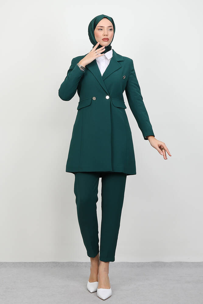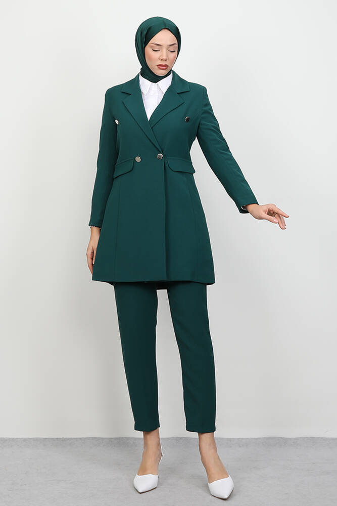 Kumaş Özelliği : Krep Kumaş Ürün Bilgisi : İpek, yün ve viscose kumaşların karışından elde edilen karma yapıya sahip olup 4 mevsim kullanımına uygundur. Ürün boyu: 86 cm  Pantolon boyu: 97 cm Manken Ölçüleri : Boy:1.70 Kilo:50 Beden:36 Ürün renginde çekimlerden dolayı ton farklılığı olabilir.