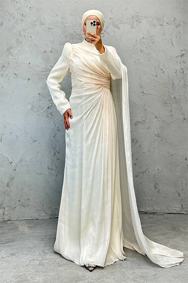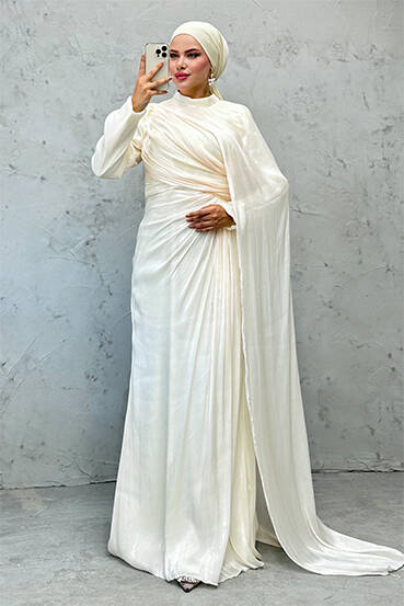 Burcu Tesettür Abiye Krem