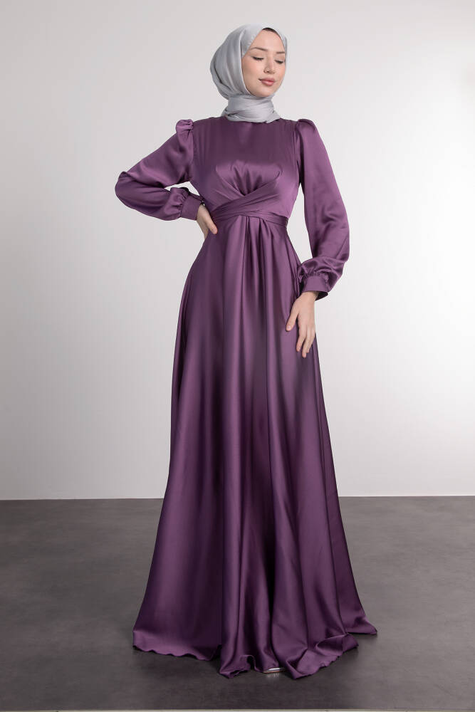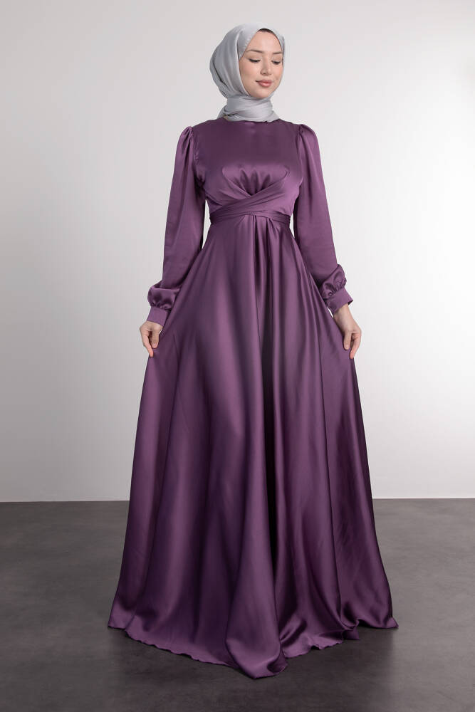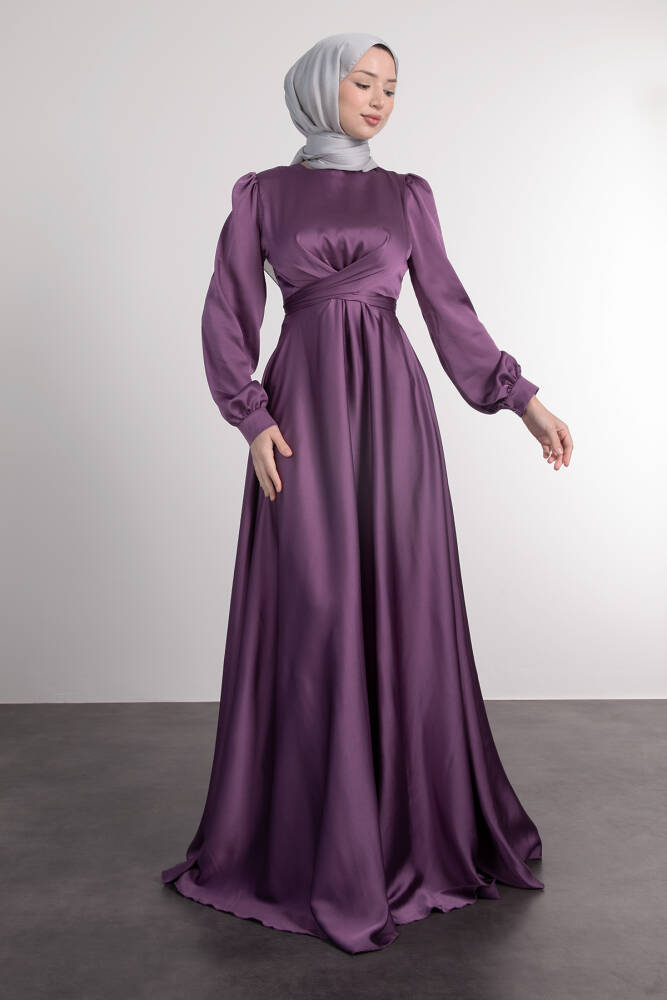 Çapraz Kuşaklı Abiye Koyu Lila