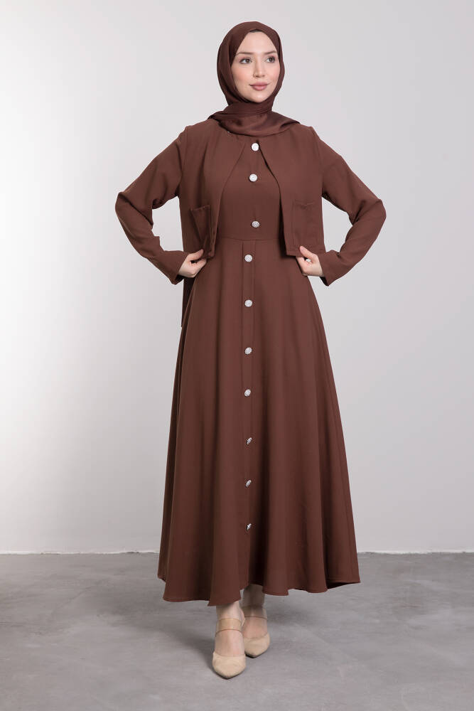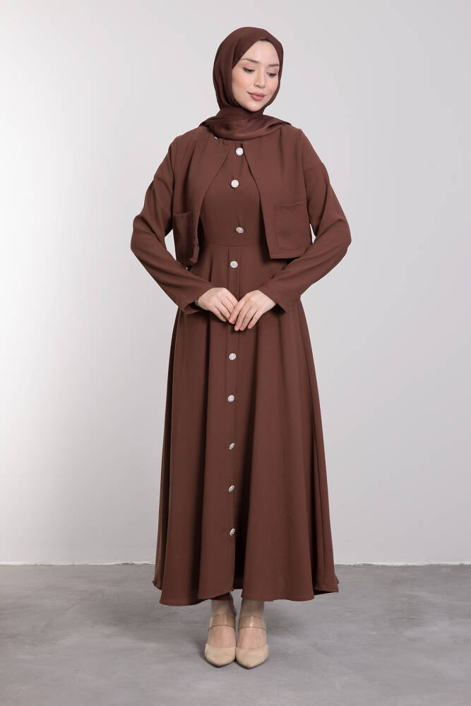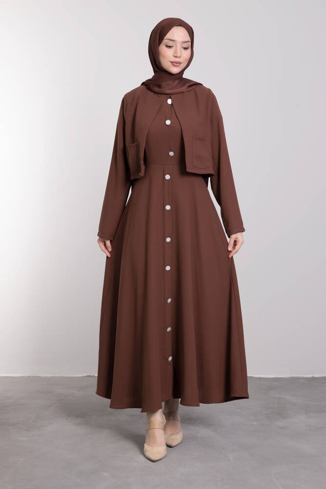 Crop Ceket Detaylı Sıfır Kol Elbise Kahverengi