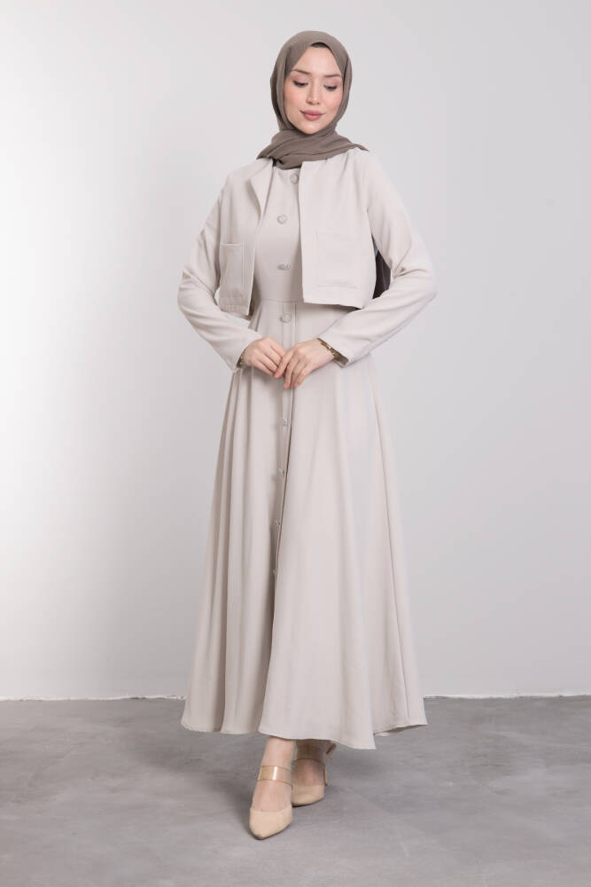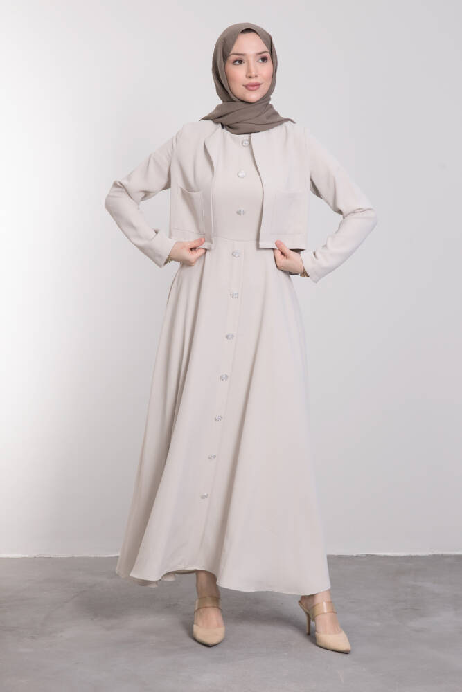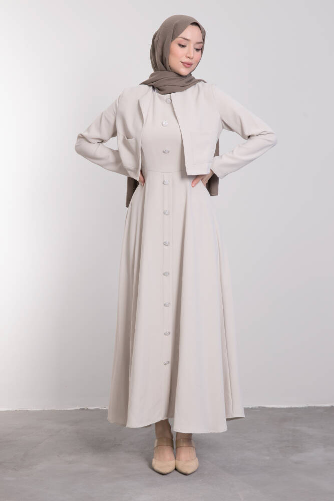 Crop Ceket Detaylı Sıfır Kol Elbise Krem