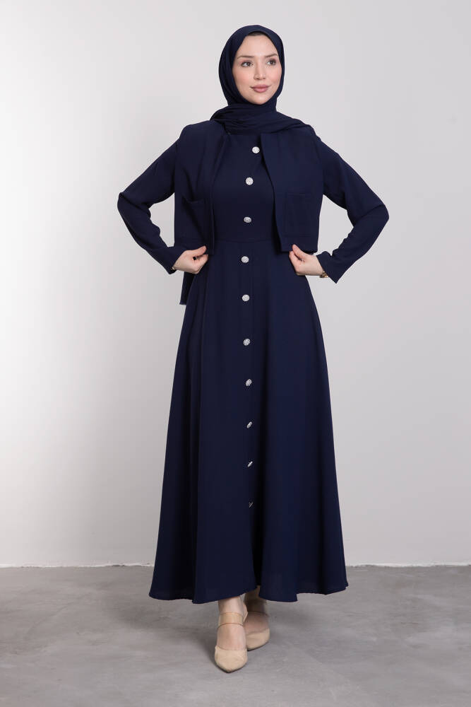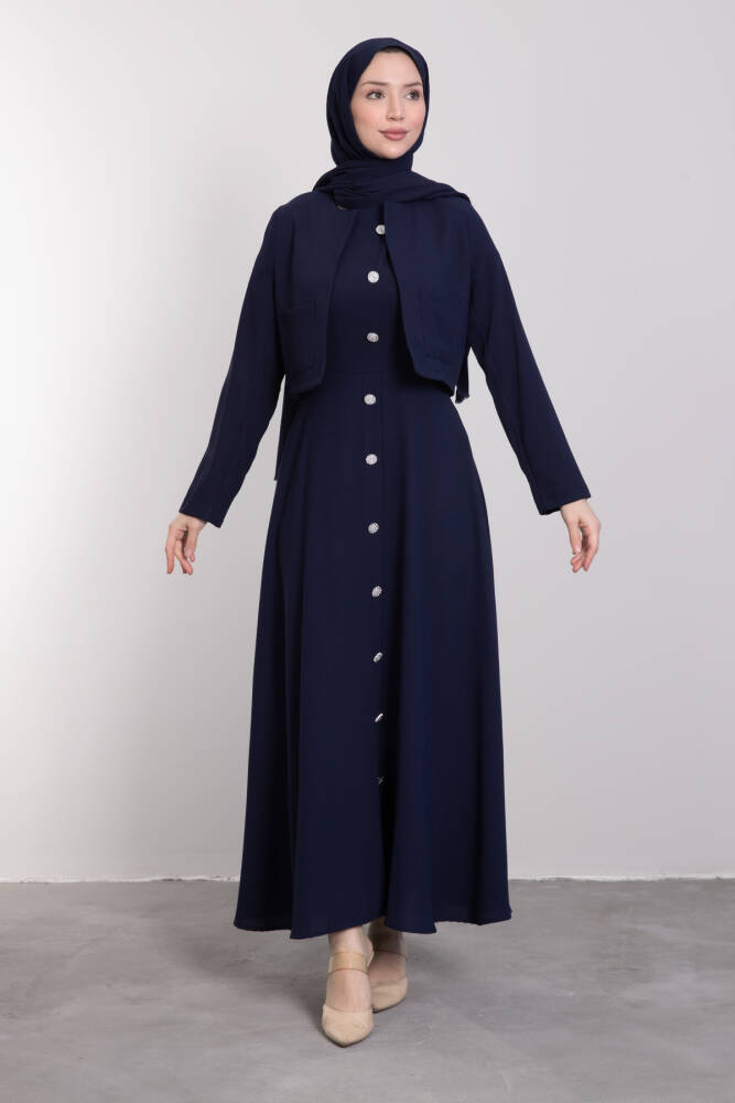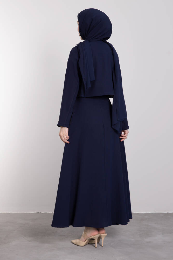 Crop Ceket Detaylı Sıfır Kol Elbise Lacivert