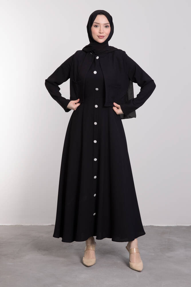Şevval Düğmeli Elbise Siyah
