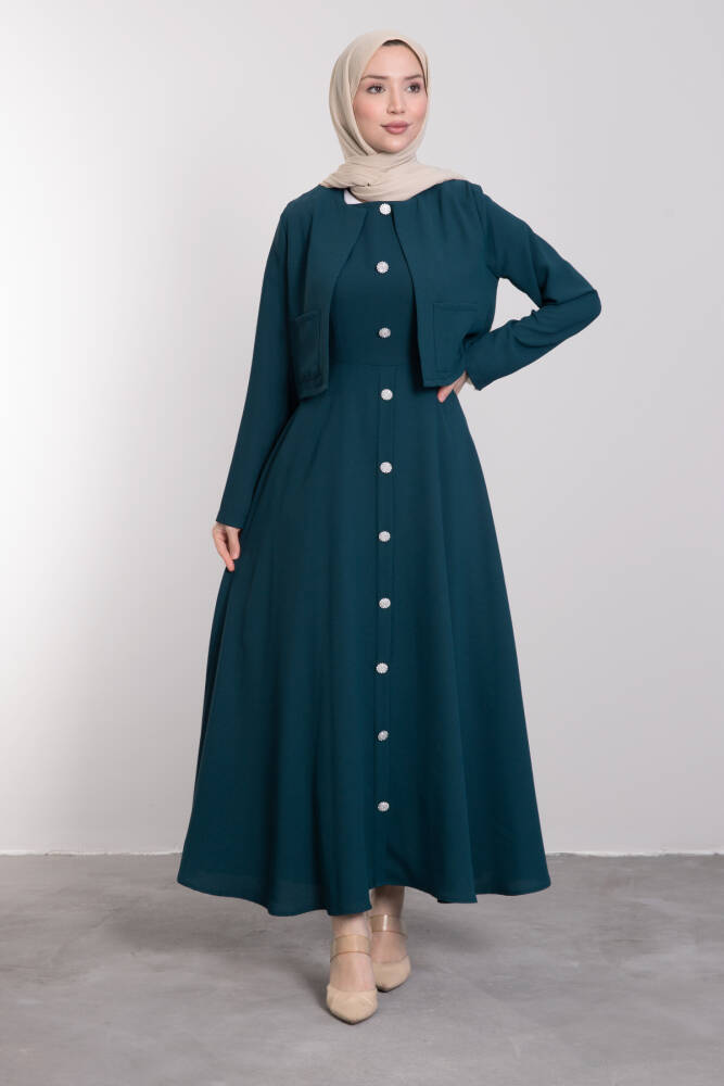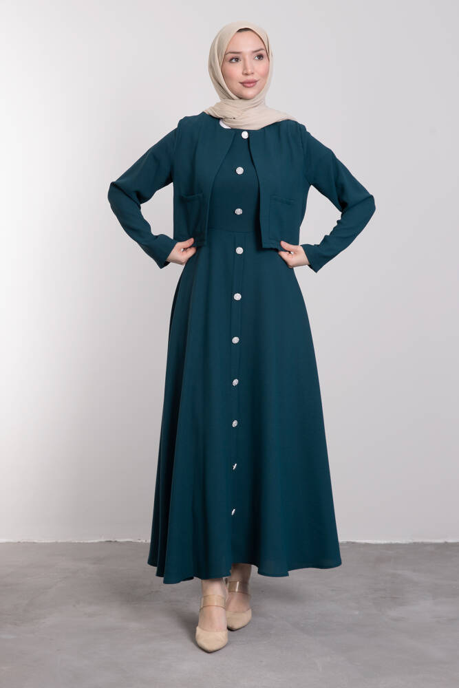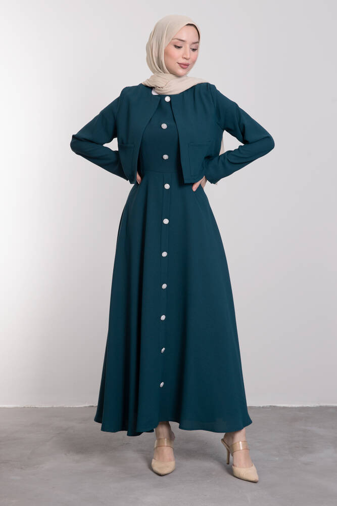Crop Ceket Detaylı Sıfır Kol Elbise Zümrüt