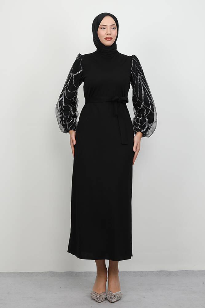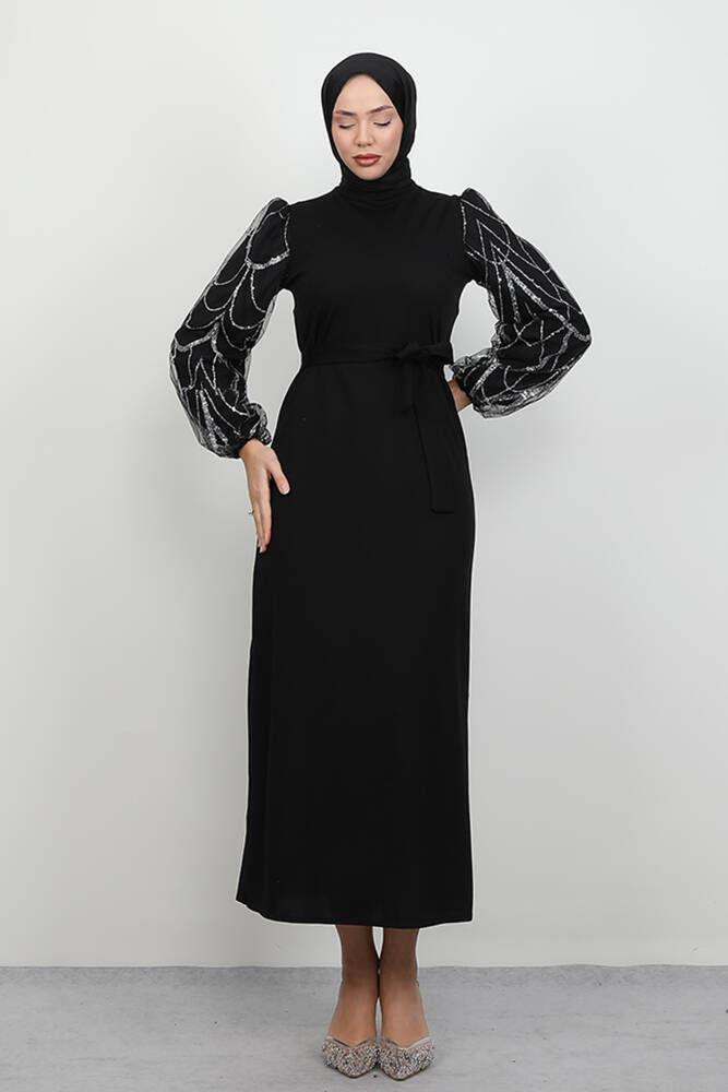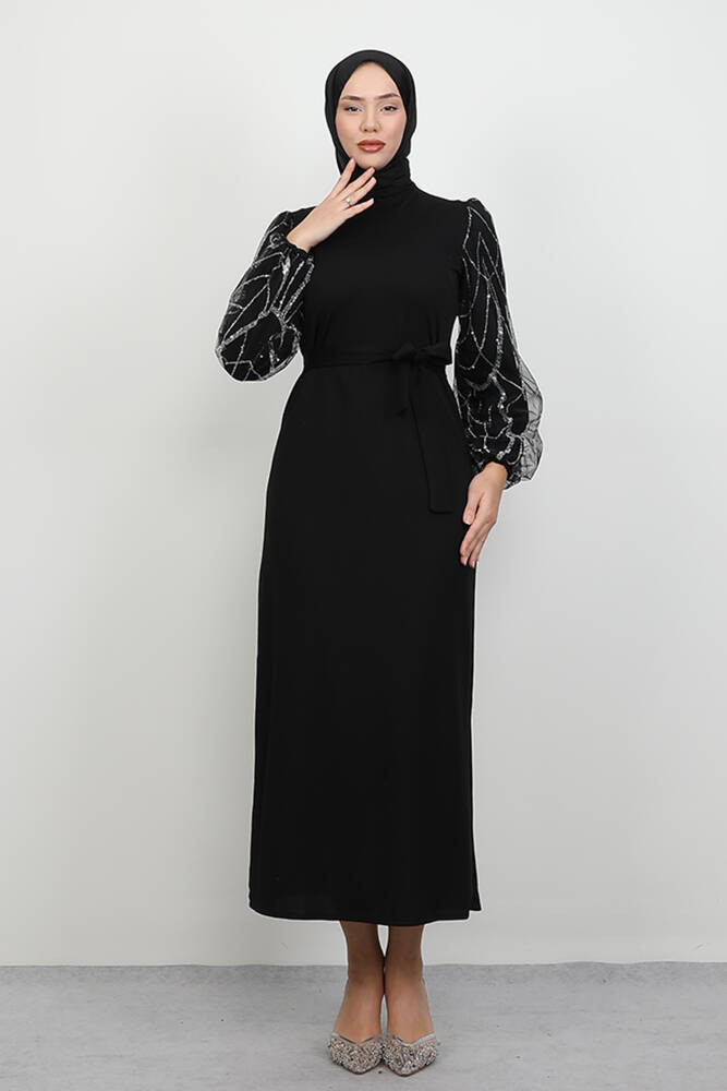 -AKSESUAR : Kolları tül.Simler yapıştırmadır.Sırttan kullanılabilir fermuar mevcuttur.Kuşak ürüne dahildir.