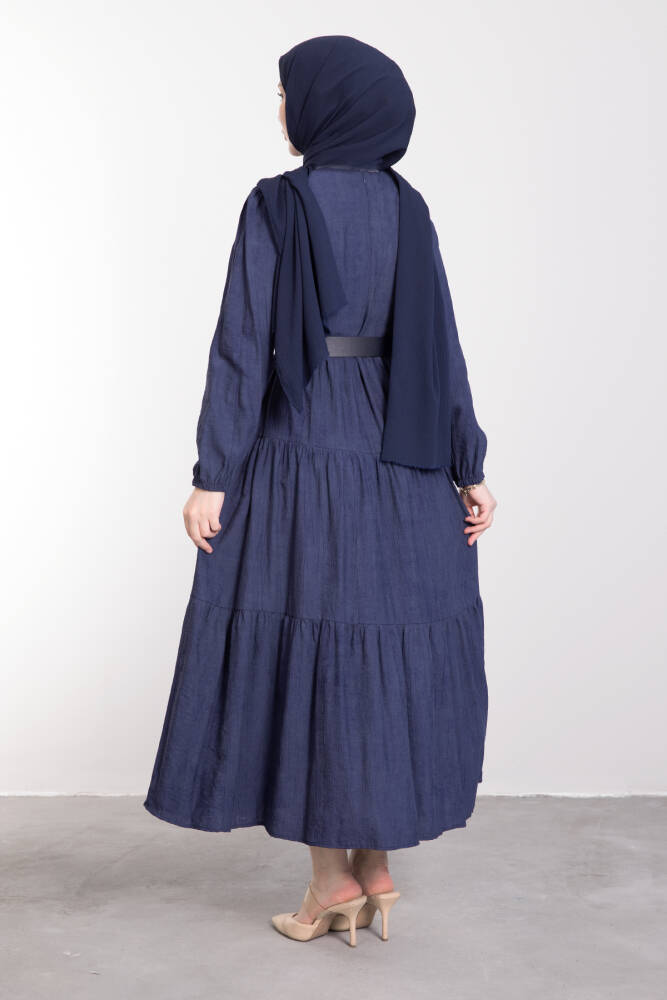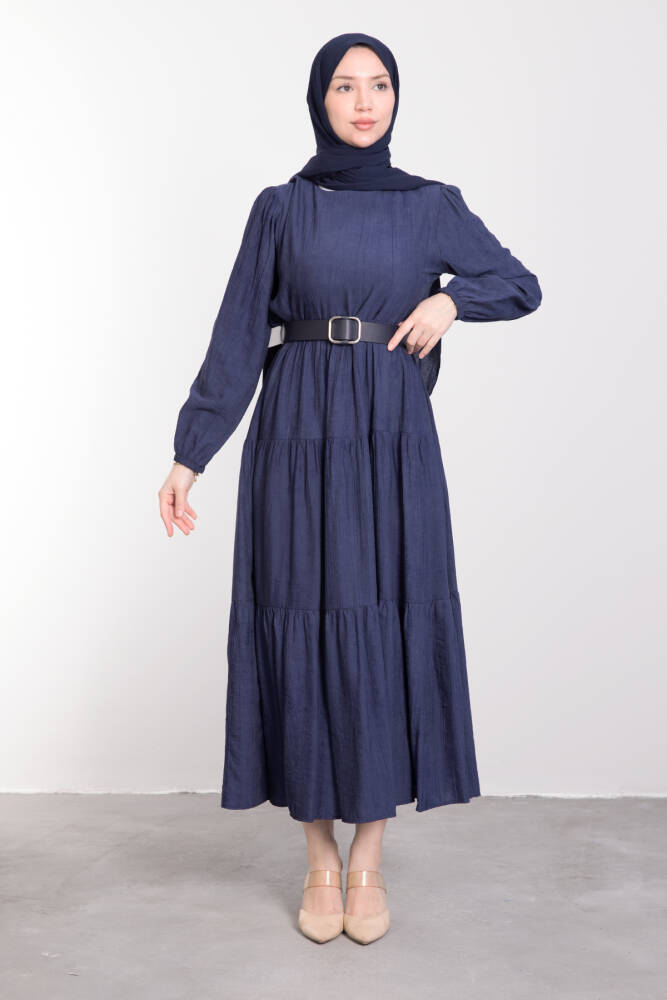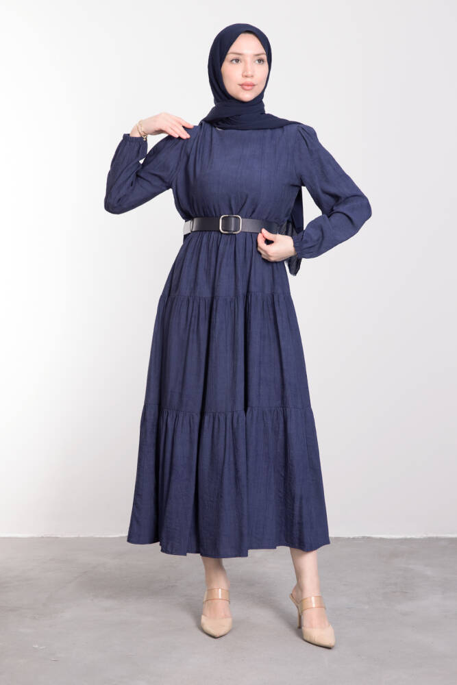 Deri Kemerli Spor Kesim Elbise Lacivert