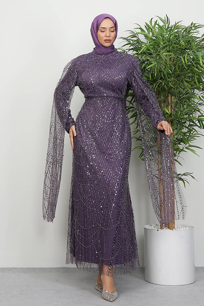 Duru Taşlı Abiye Lila