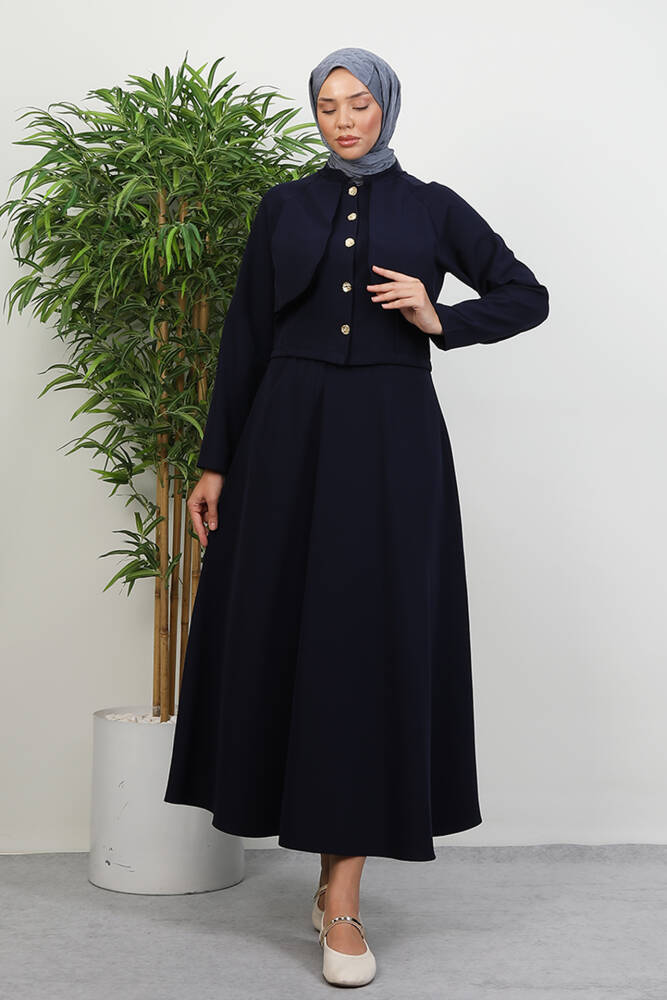 -AKSESUAR : Etek beli lastiklidir. Üst düğmeler açılabilir.