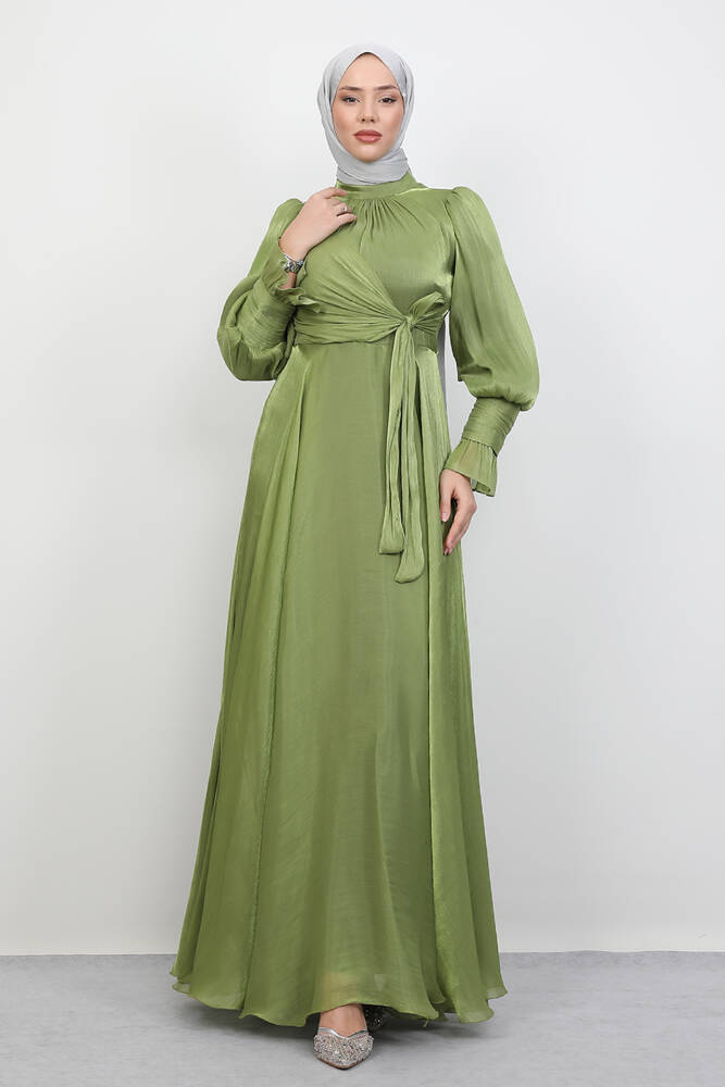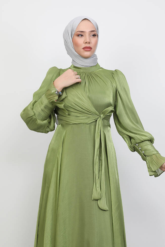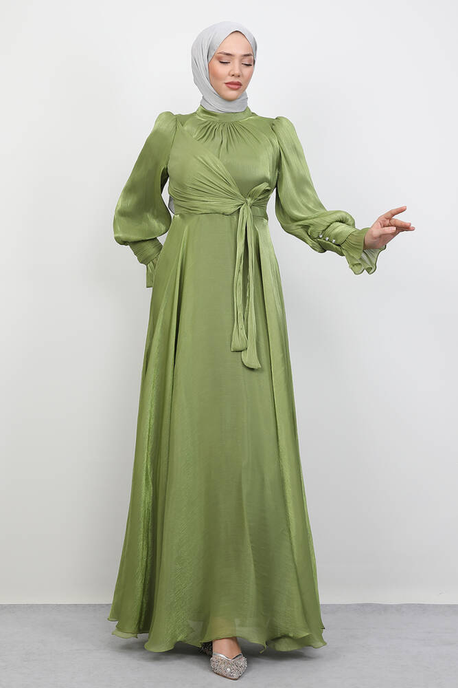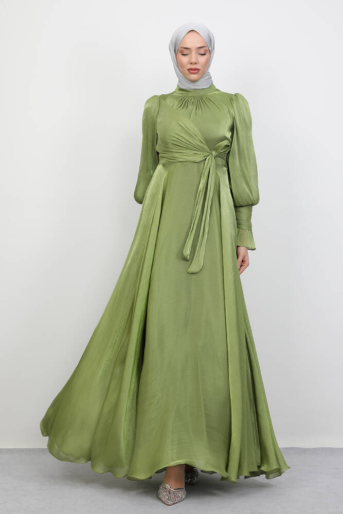 Fiyonk Detay İpek Abiye Fıstık Yeşil