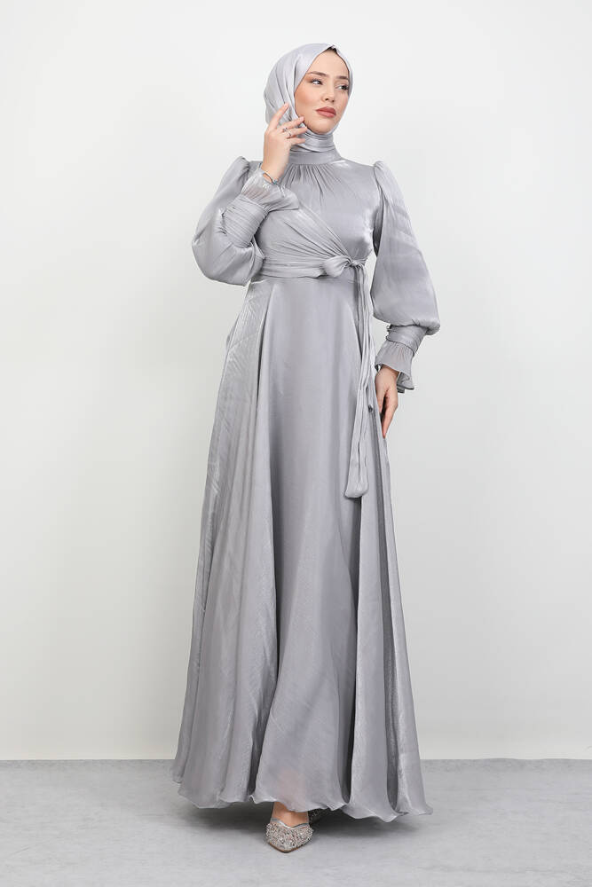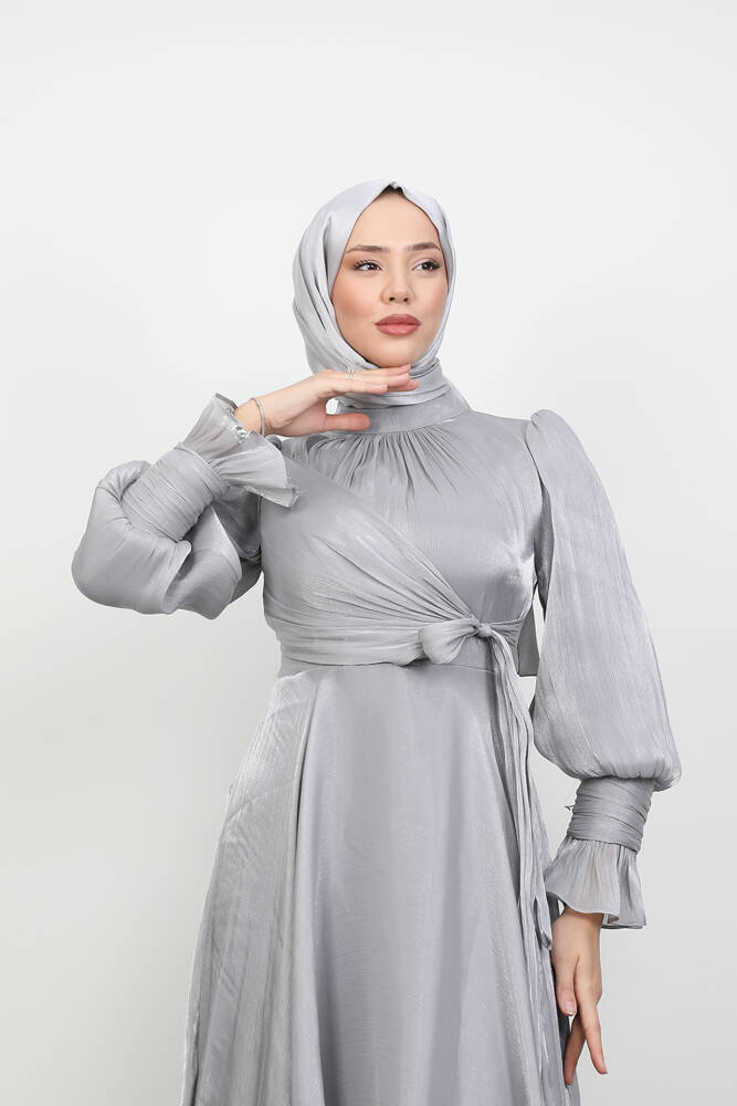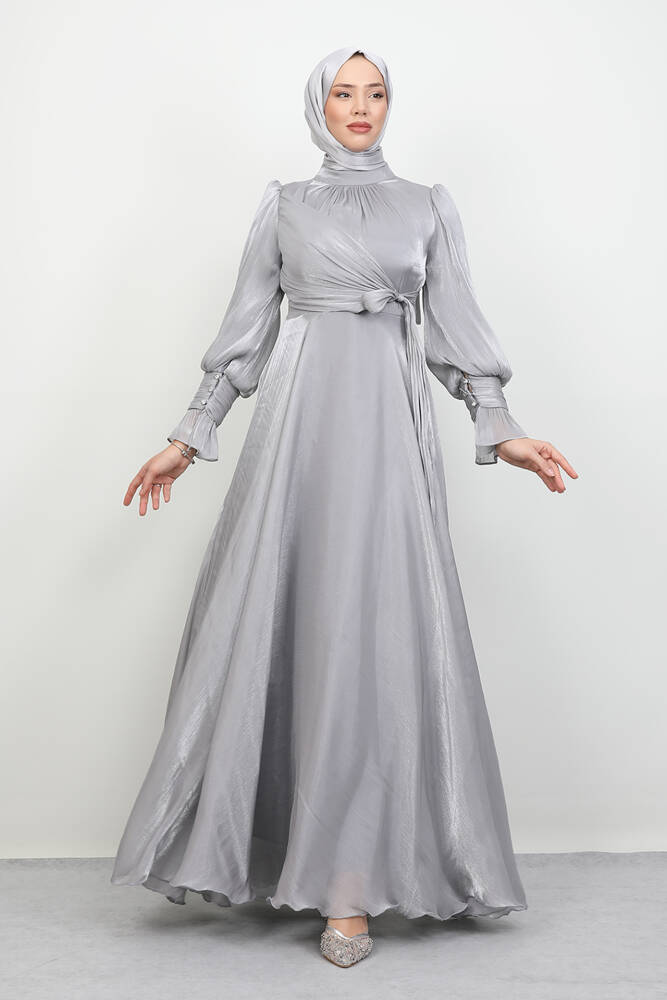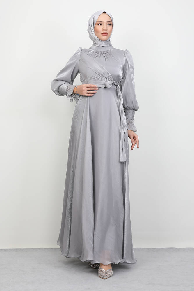 Fiyonk Detay İpek Abiye Gri