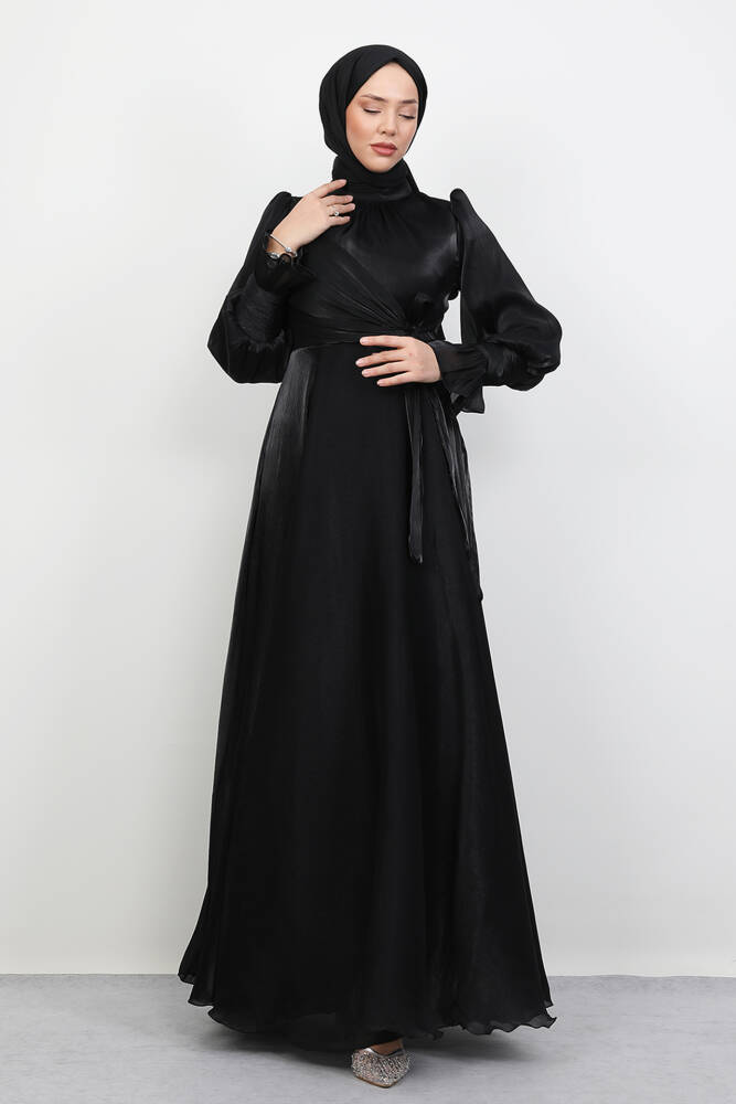 Fiyonk Detay İpek Abiye Siyah
