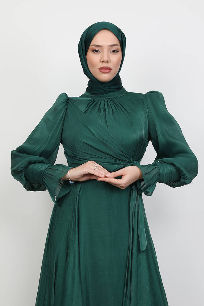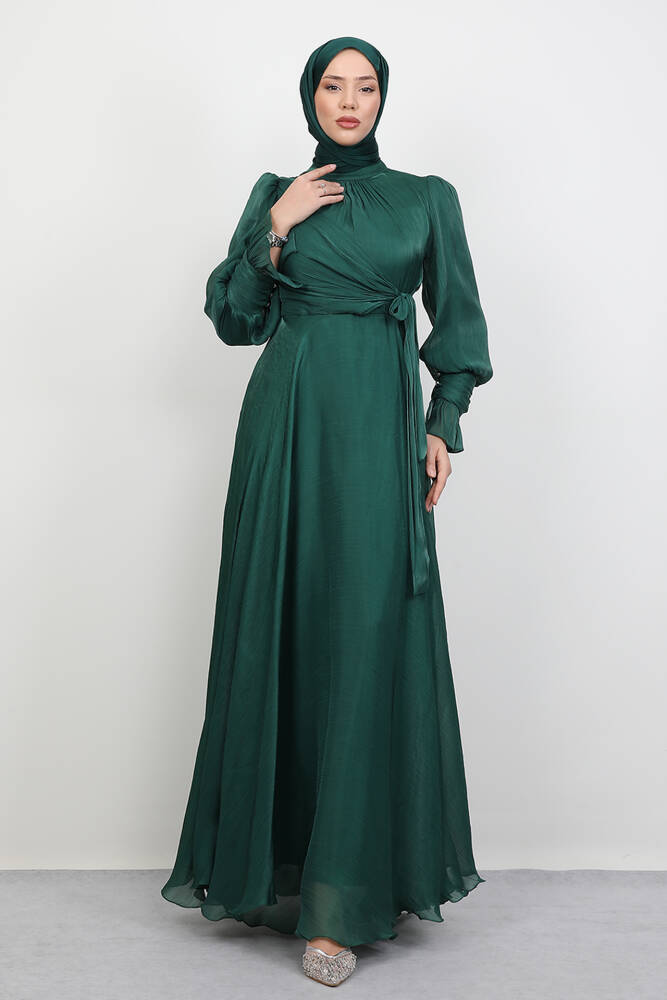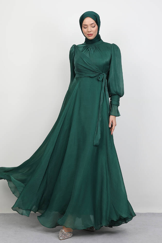 Fiyonk Detay İpek Abiye Zümrüt