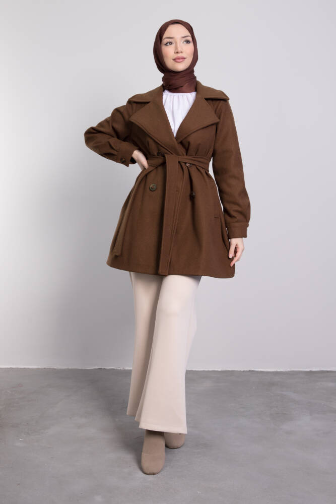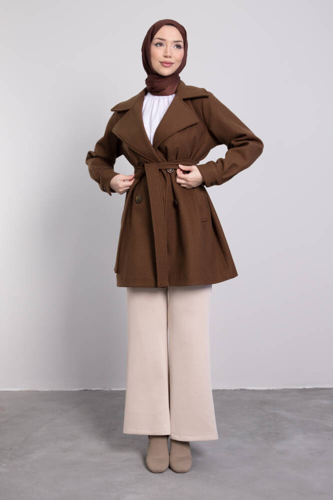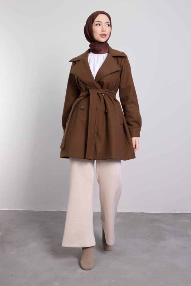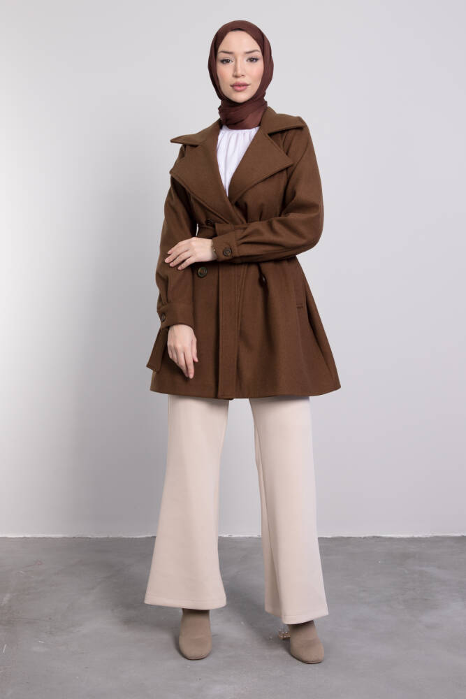 Geniş Yaka Kısa Kaşe Kaban Kahverengi