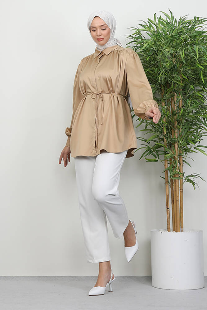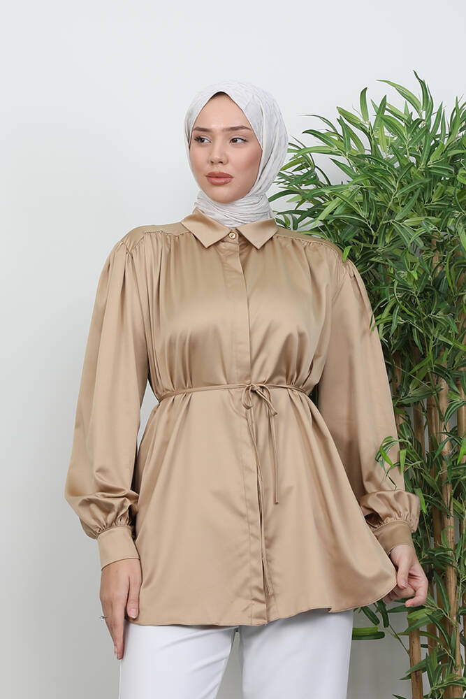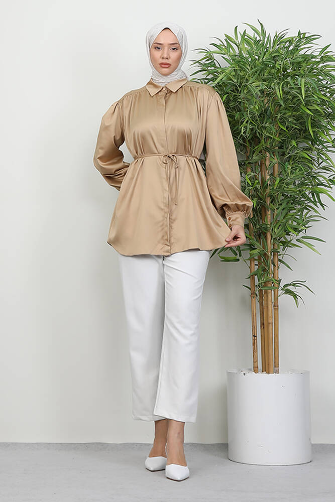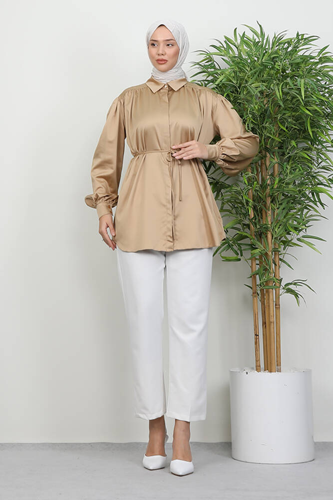 Gizli Düğmeli Saten Gömlek Bisküvi