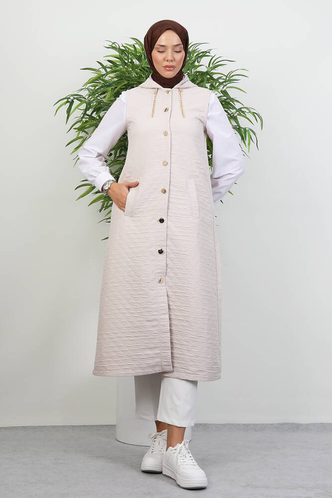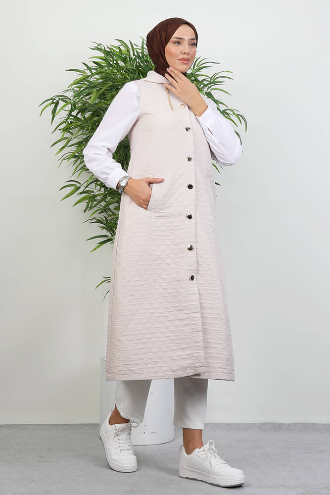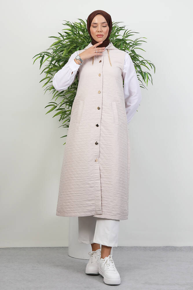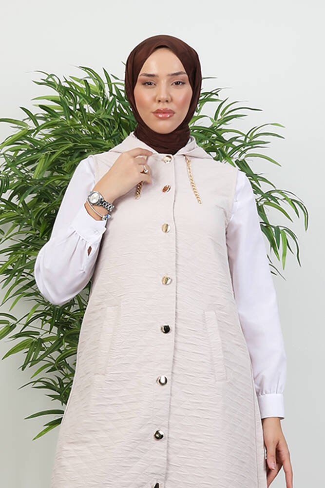 Gold Detay Yelek Krem