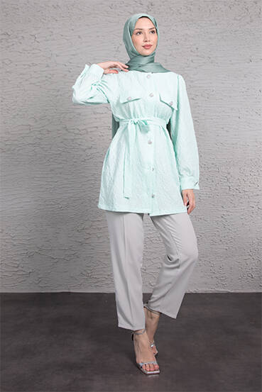 Balon Kol Düğmeli Gömlek Bebe Mavi
