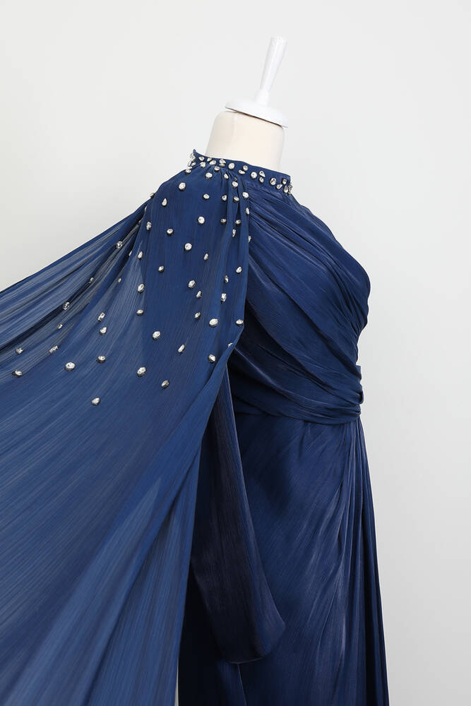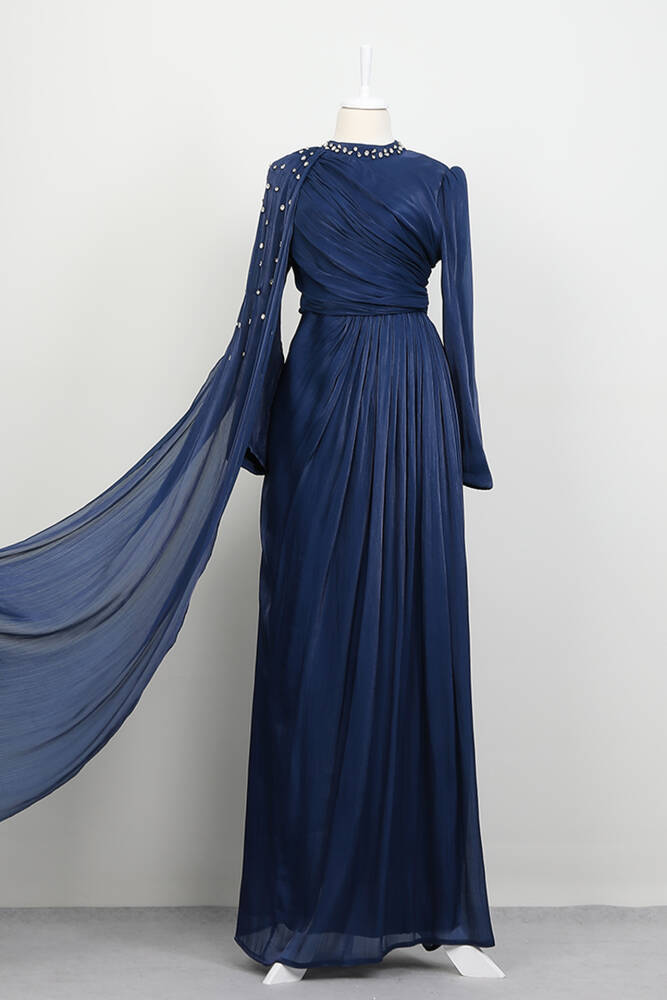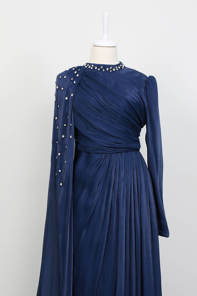Rozalin Saten Abiye Lacivert