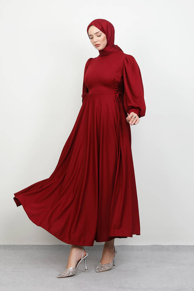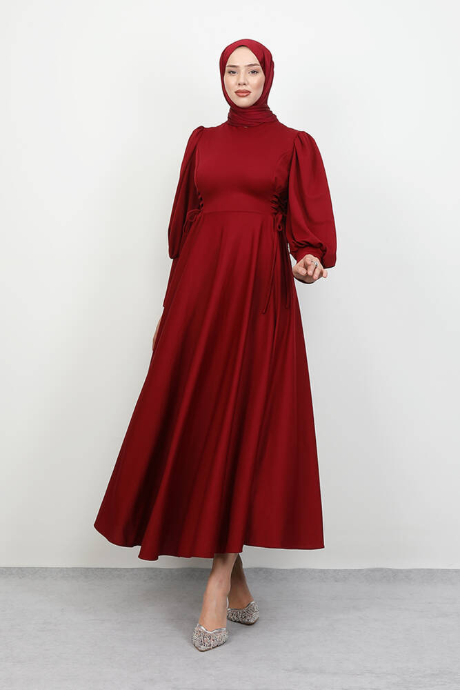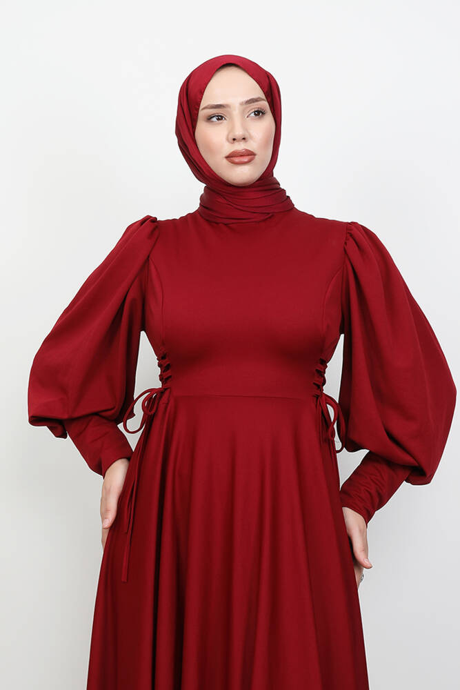 İp Kuşaklı Elbise Bordo