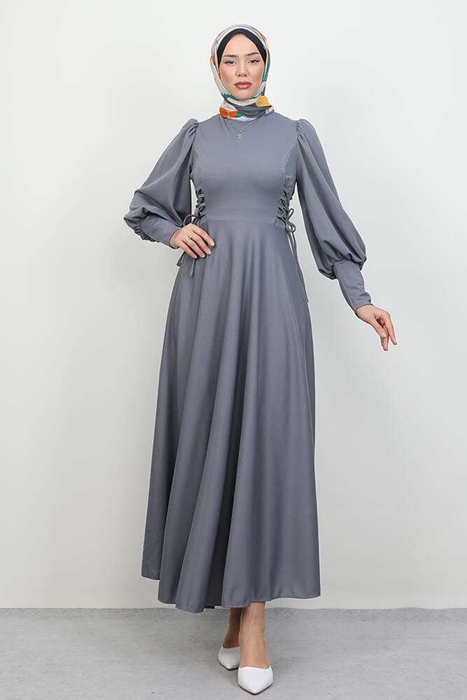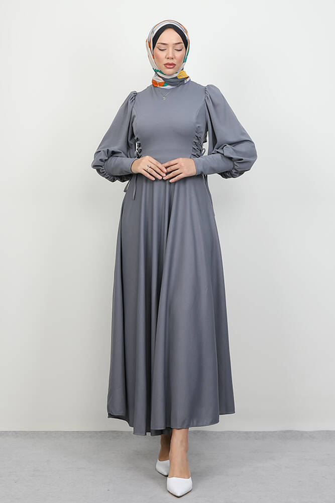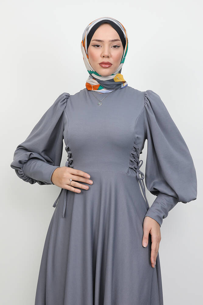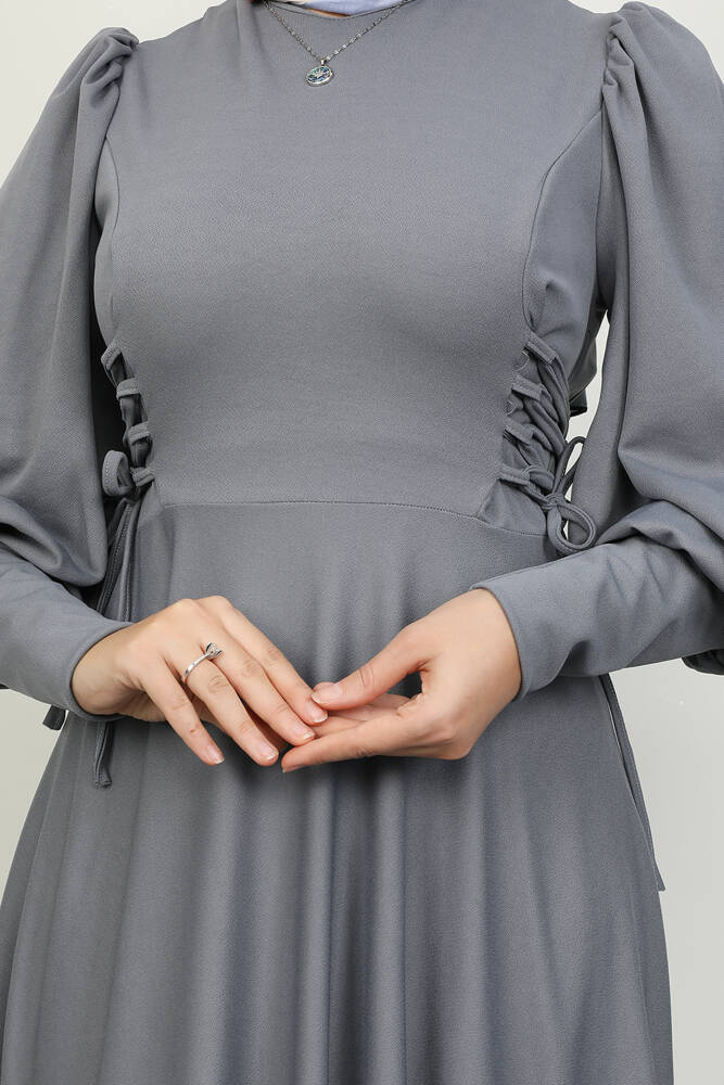 İp Kuşaklı Elbise Gri