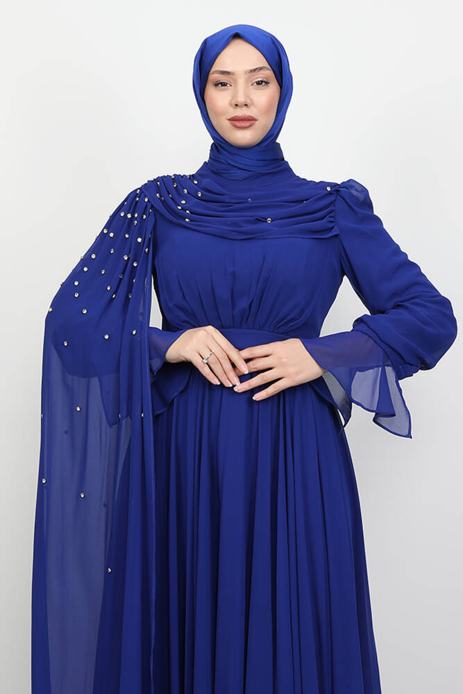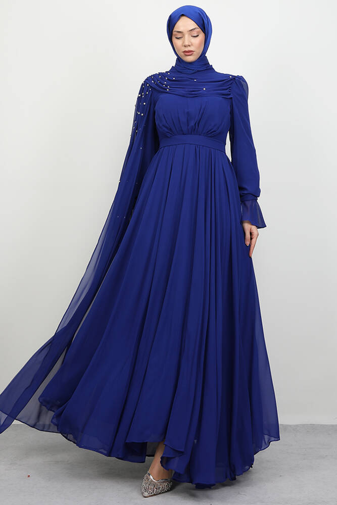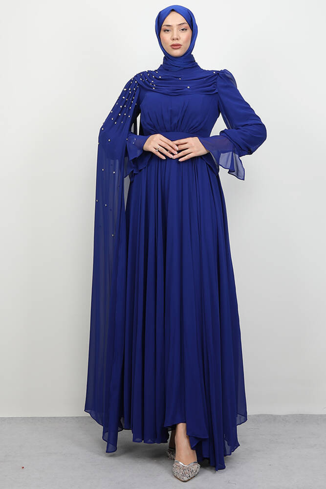Karanfil Pelerinli Elbise Gece Mavi