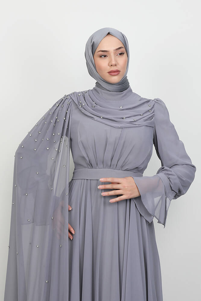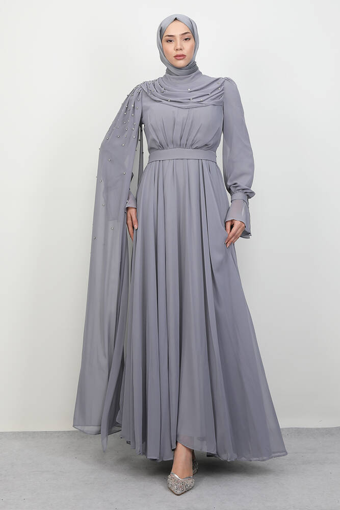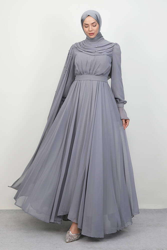 Karanfil Pelerinli Elbise Gri
