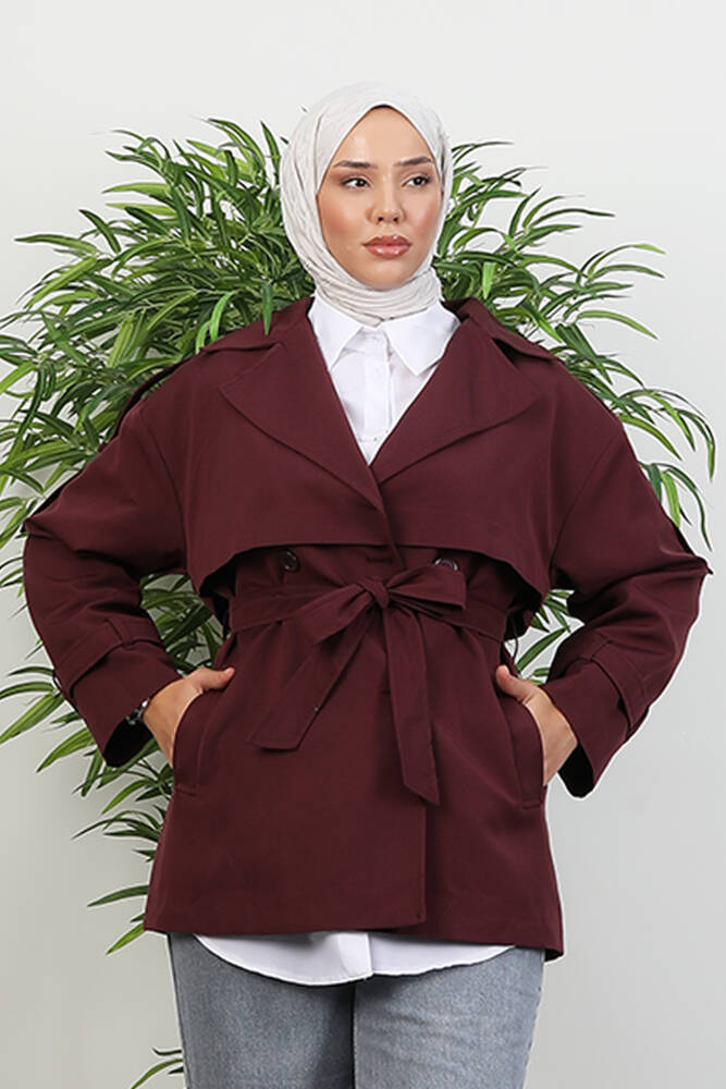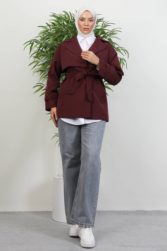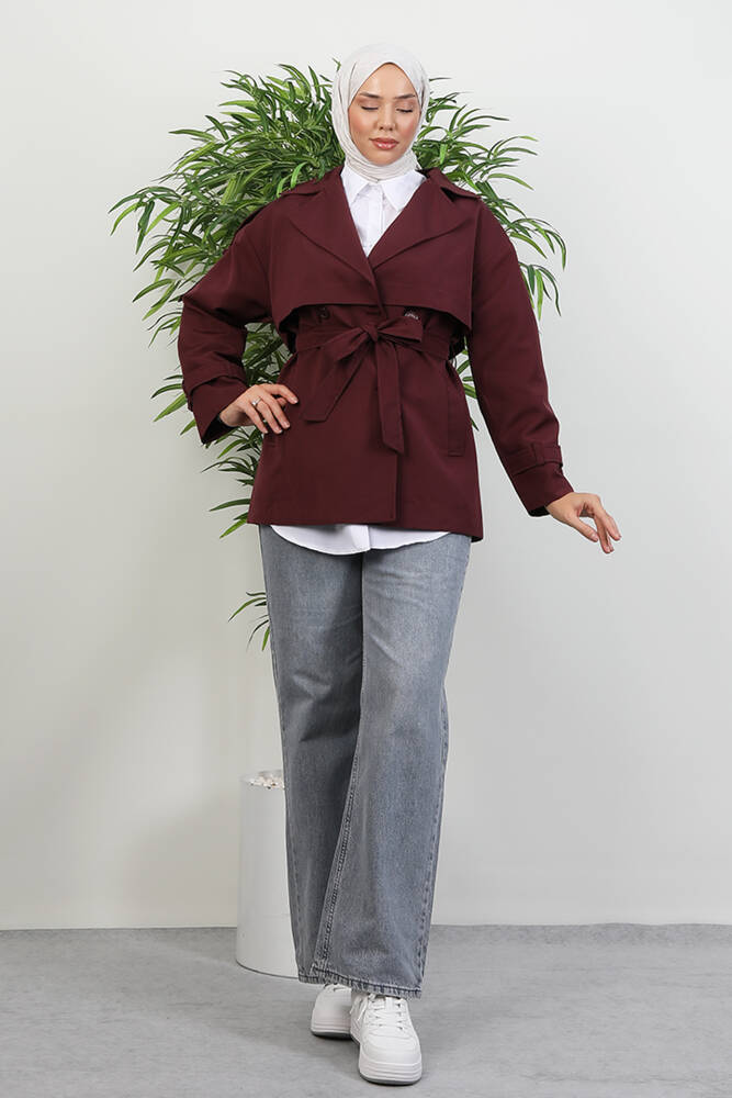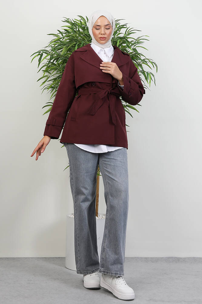 Kemer Detay Kısa Trenç Bordo