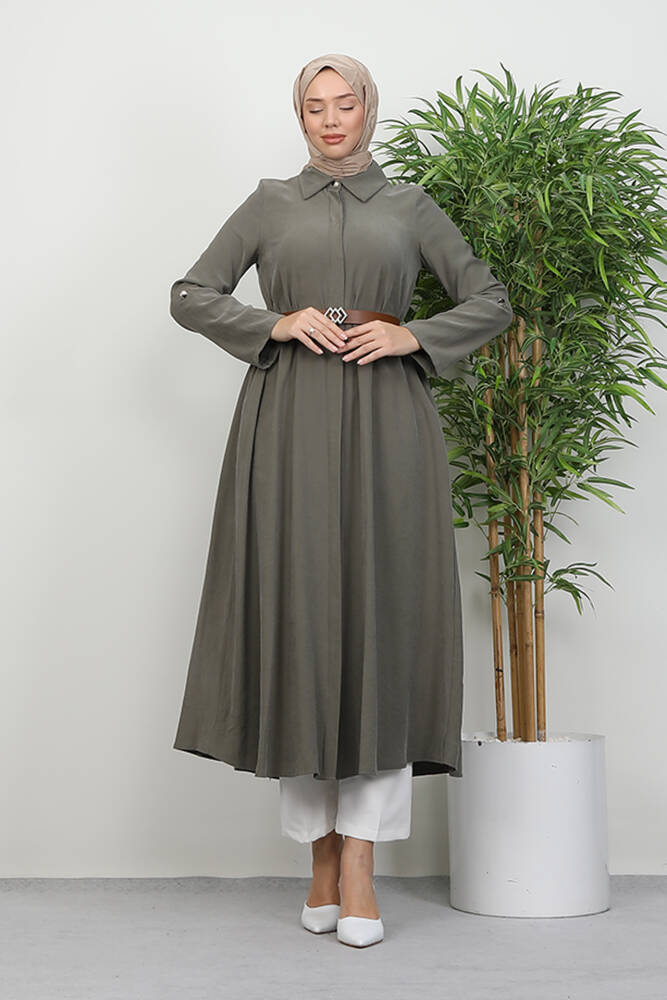 -AKSESUAR : Boydan düğmelidir. Kemerlidir.