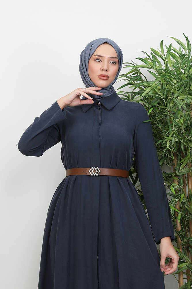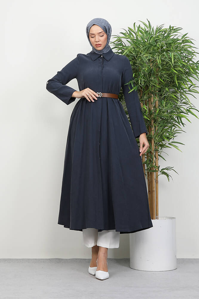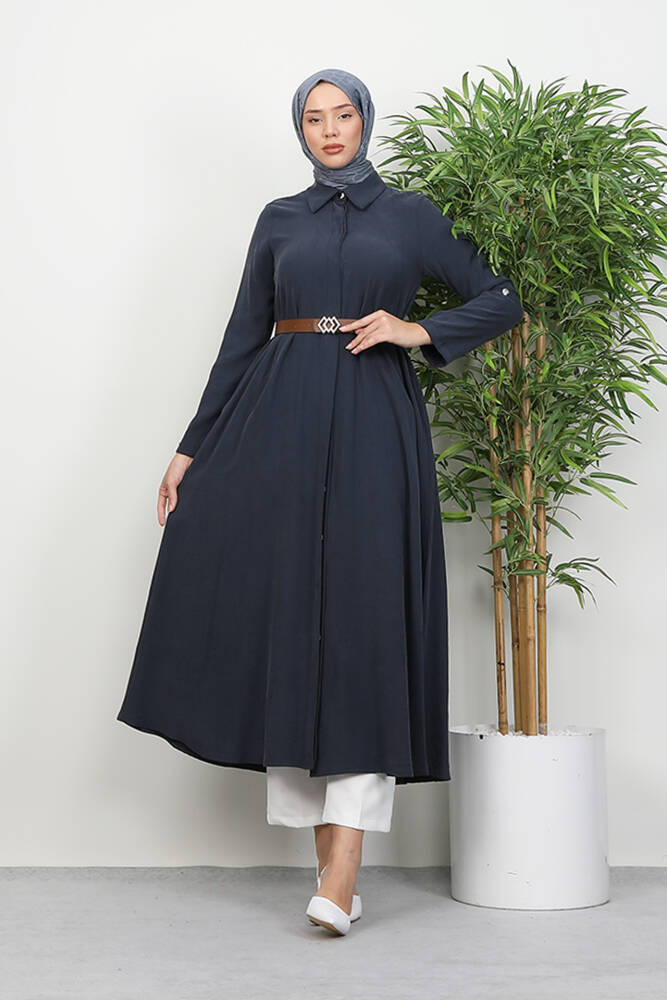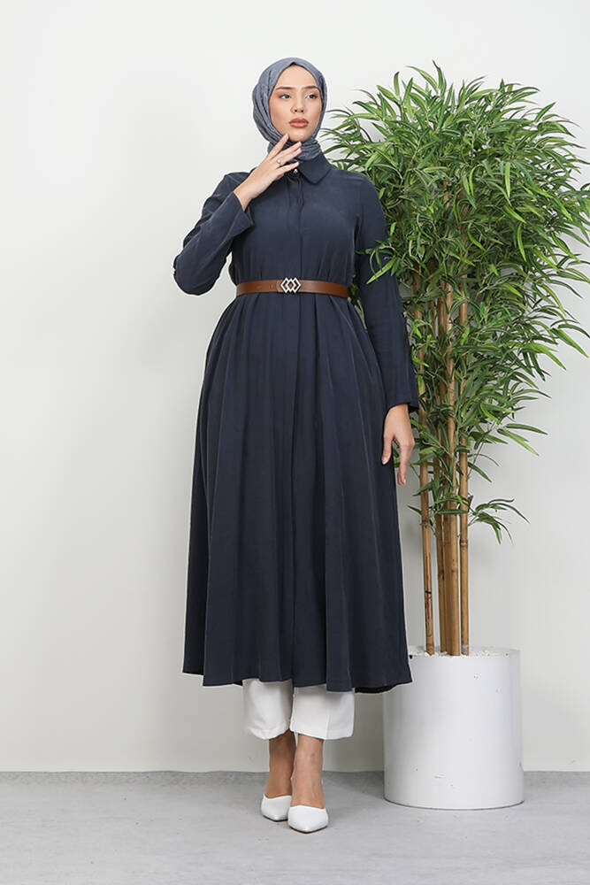 Kemerli Gömlek Tunik Koyu Gri