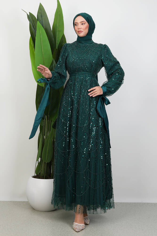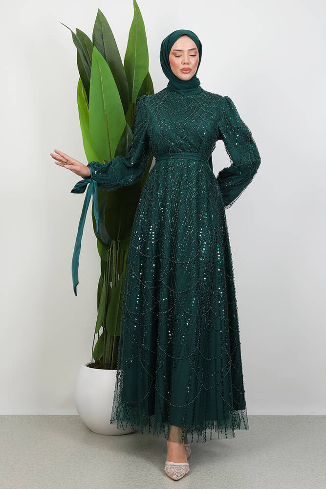 Kumaş Özelliği : Tül üzerine işleme kumaştan imal edilmiştir.