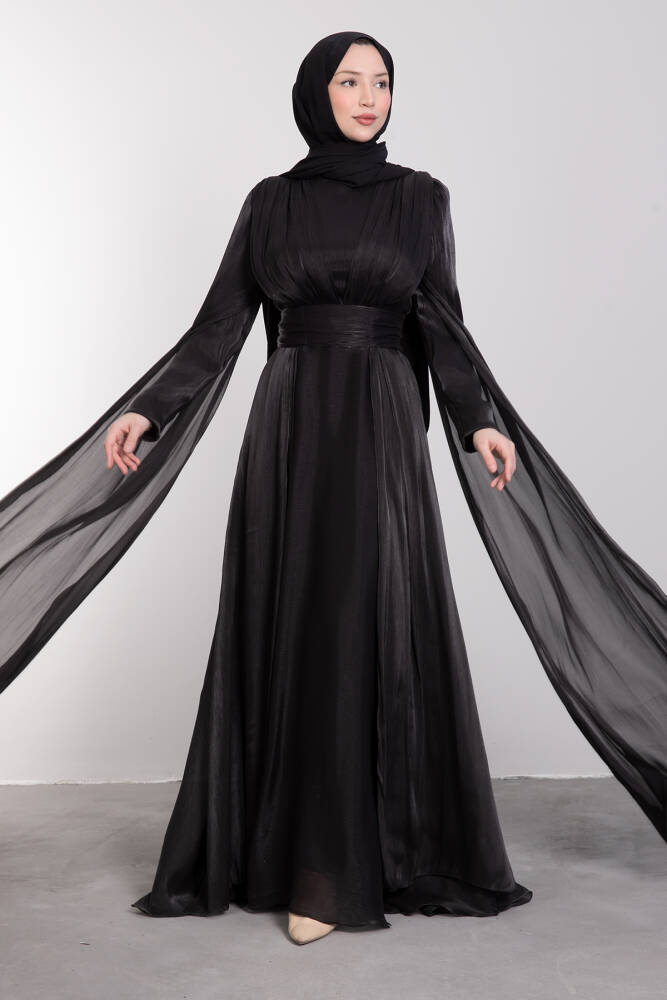 Kolları Pelerin Detaylı Tesettür Abiye Siyah