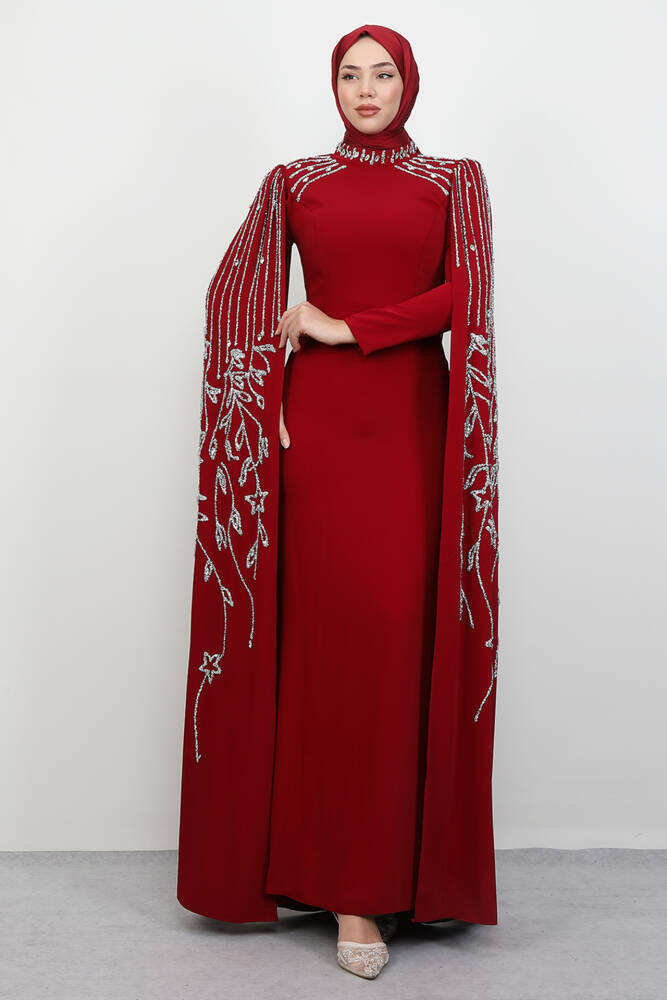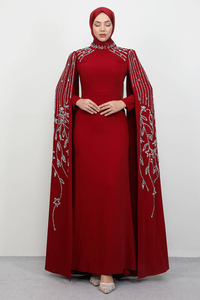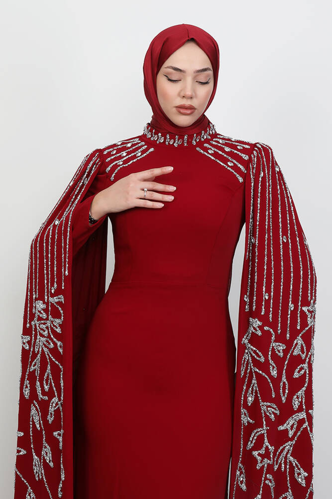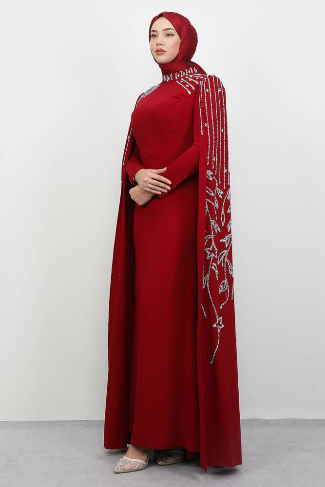 Kolları Taşlı Pelerinli Abiye Bordo