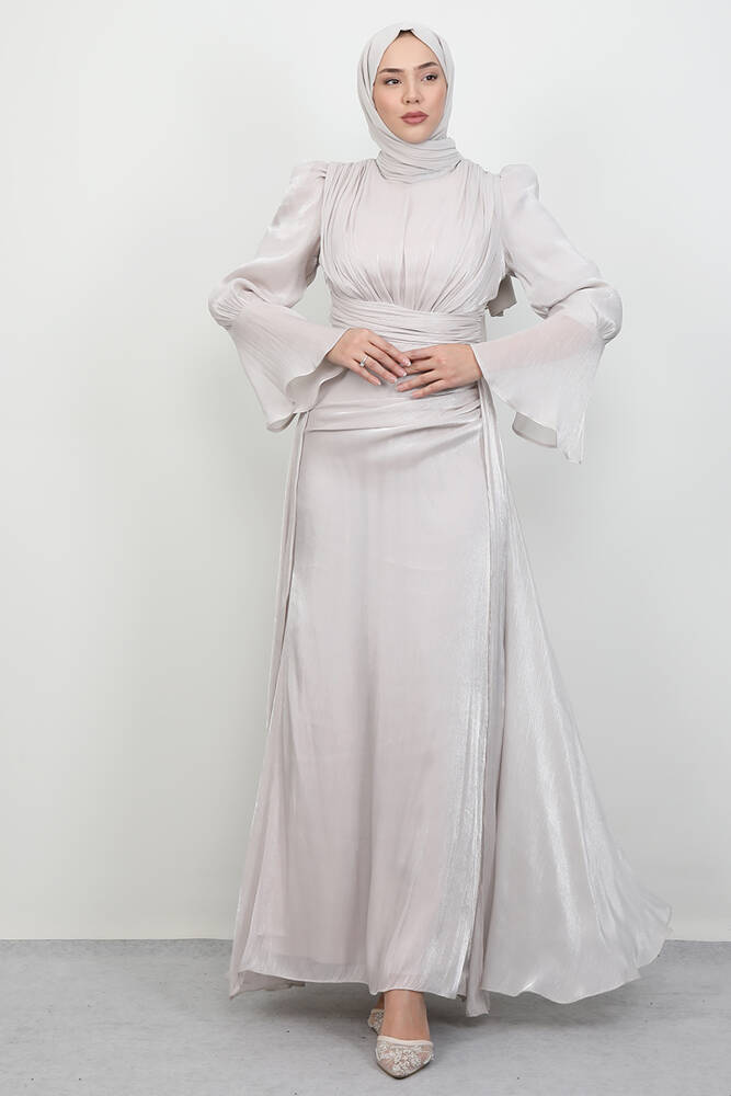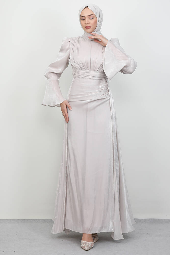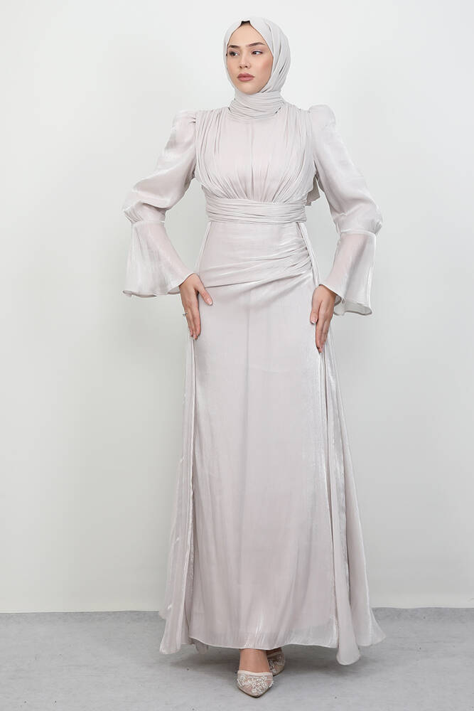 Kolu Volanlı Yoryo Elbise Bej