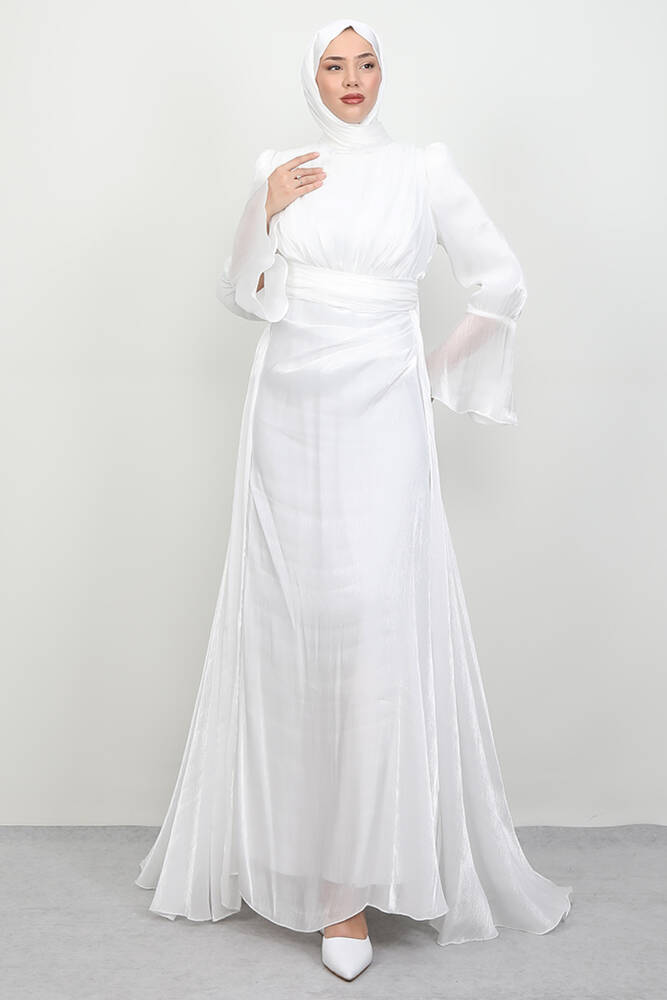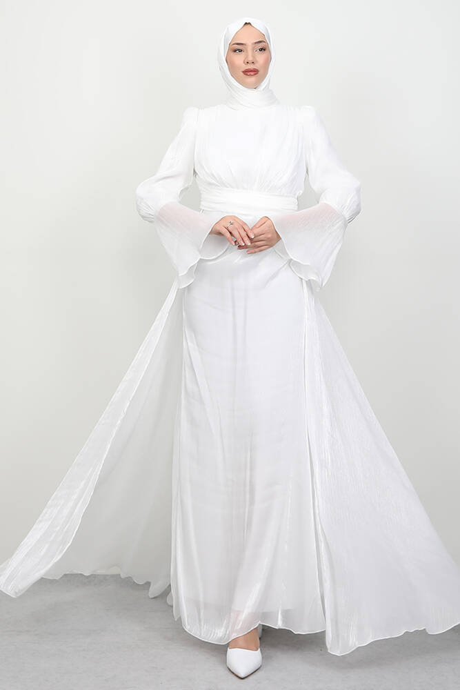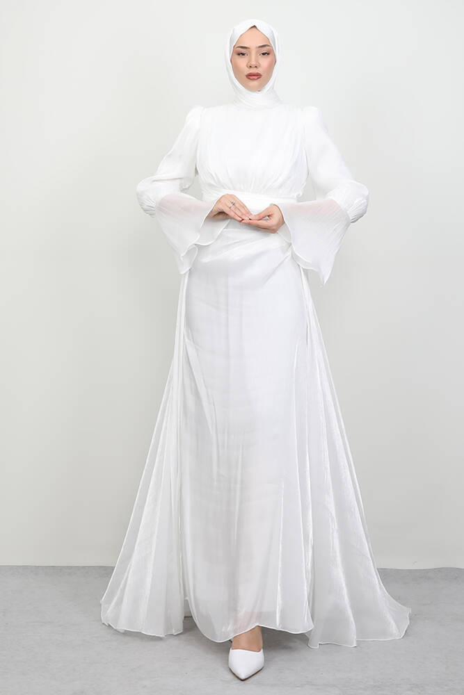 Kolu Volanlı Yoryo Elbise Beyaz