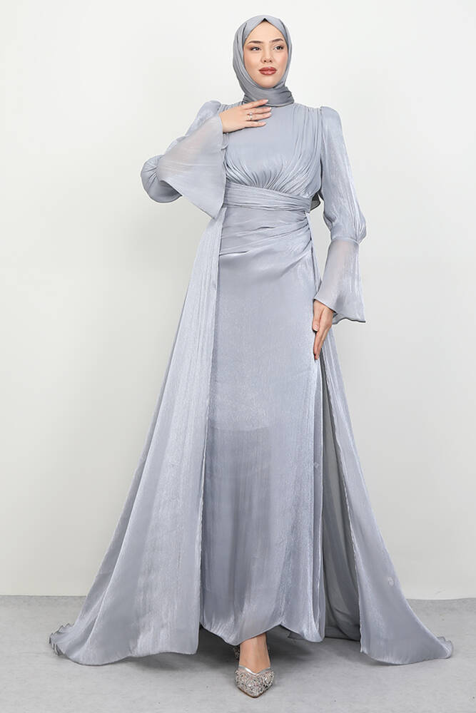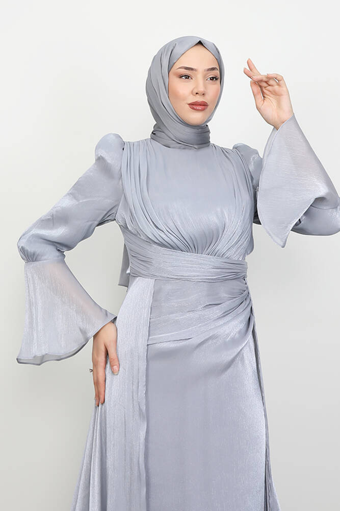 Kolu Volanlı Yoryo Elbise Gri