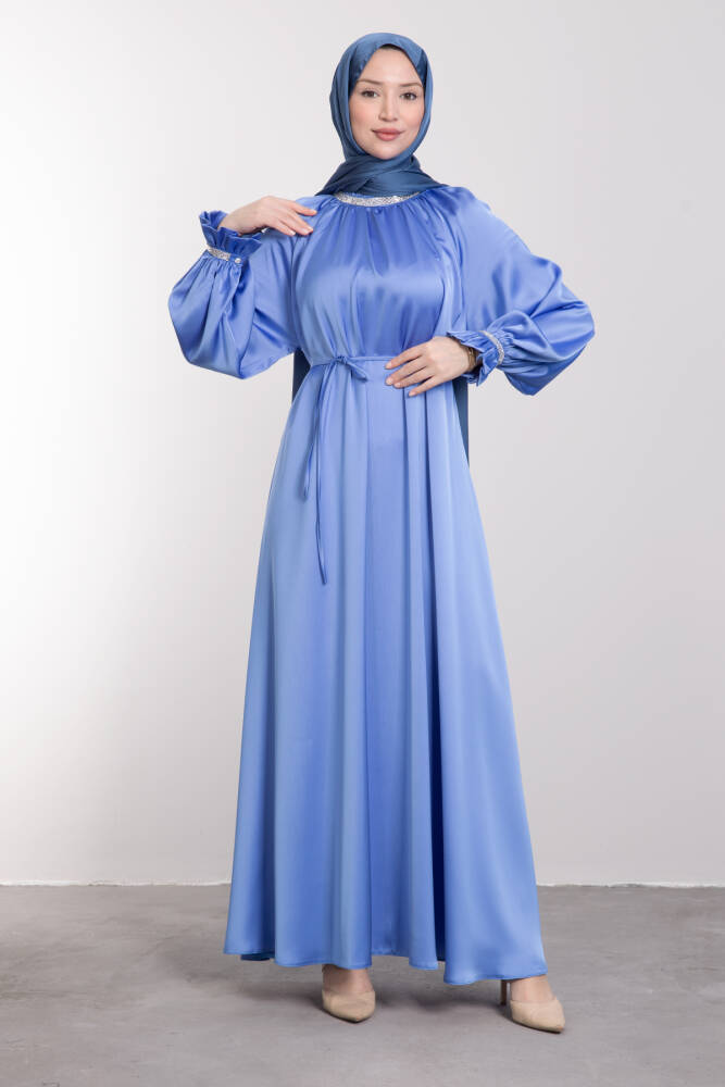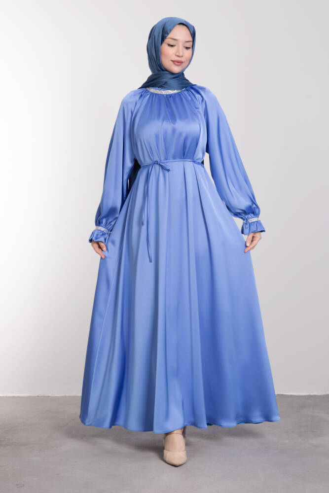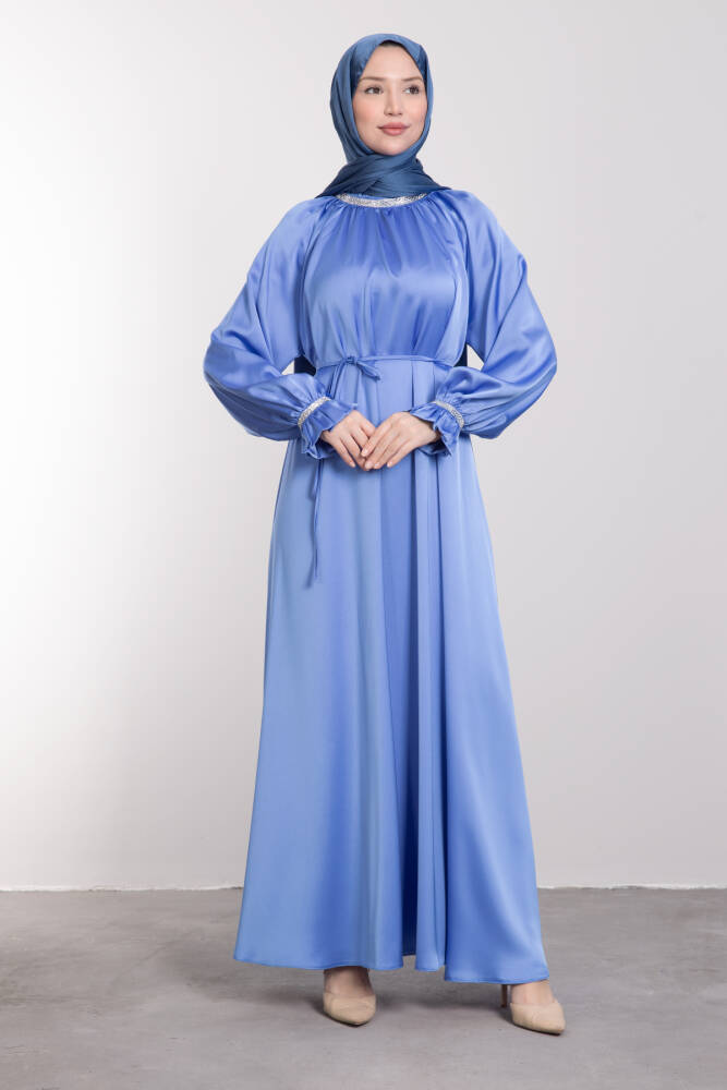 Kristal Taş İşlemeli Elbise Mavi